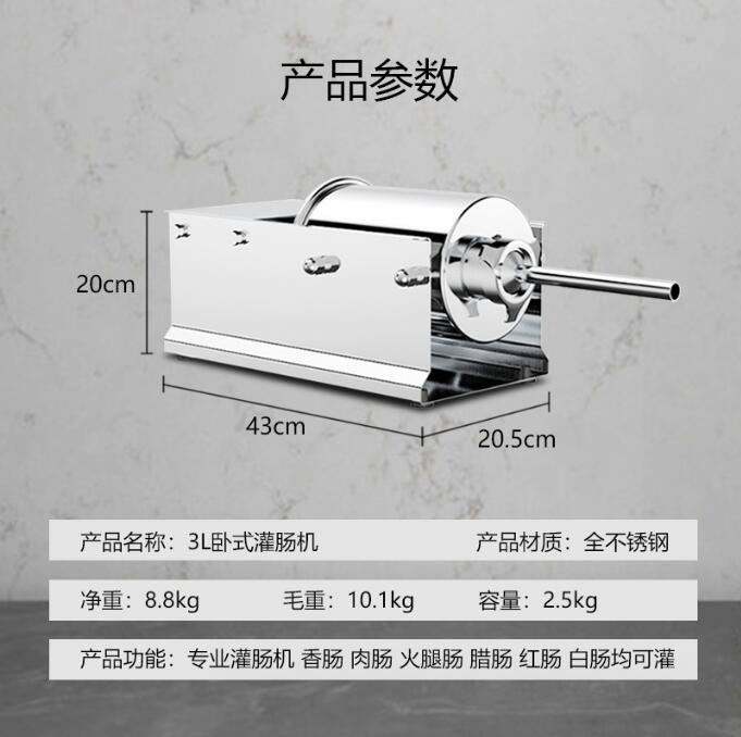 Máquina de enema horizontal con manivela manual de 3L, máquina de llenado de acero inoxidable para salchichas de salami de exportación profesional para el hogar pequeño