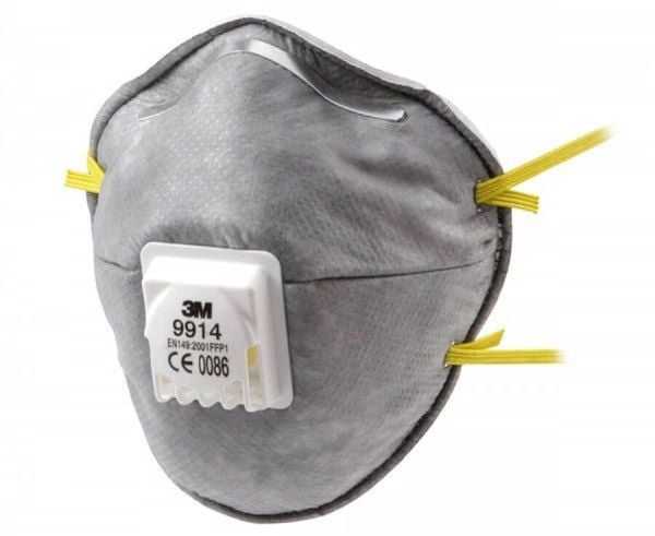 La máscara de carbón activado 3M 9914 proporciona protección respiratoria contra el polvo, las partículas a base de aceite y los aerosoles a base de agua.