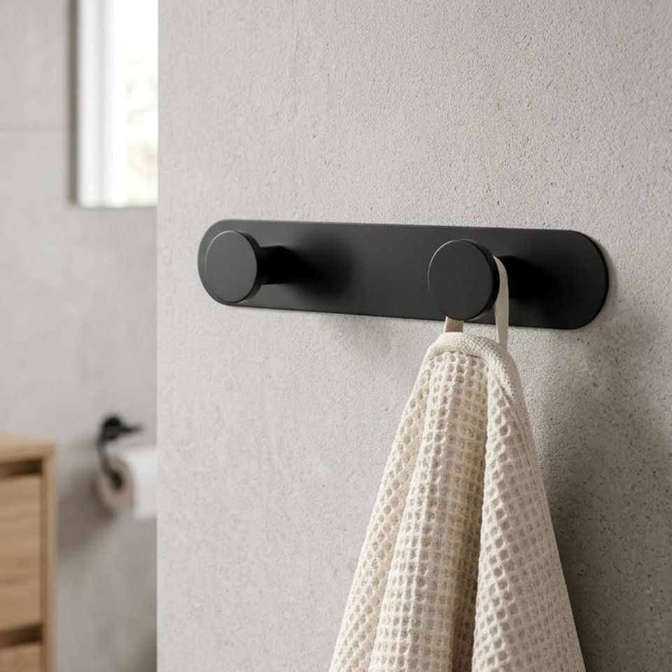 Ganchos Colgantes de Metal Negro Autoadhesivos de Doble Gancho Sin Perforación 3M, Juego de Organizadores de Bolsas de Ropa, Resistentes al Agua para Baño y Sala de Estar