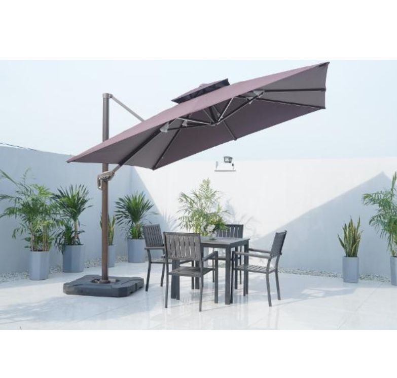 Base de sombrilla de ratán de 20L moderna, marco de acero inoxidable, forma cuadrada, radio de 3M, Patio para patio, Hotel, accesorios de verano