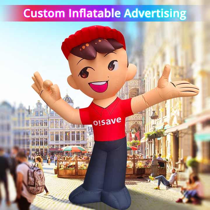 Modelo Inflable Personalizado de Dibujos Animados para Exteriores de 3 Metros, Inflable Publicitario, Niño Rojo Inflable con Gorra de Béisbol para Publicidad Navideña