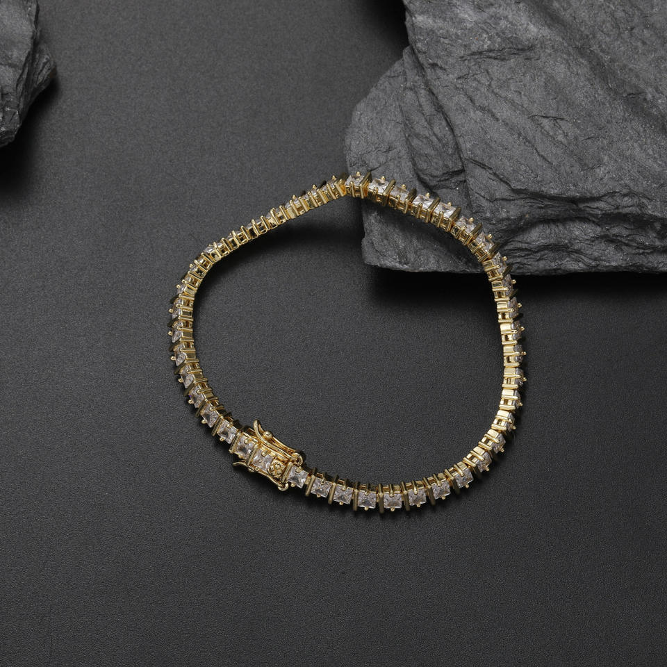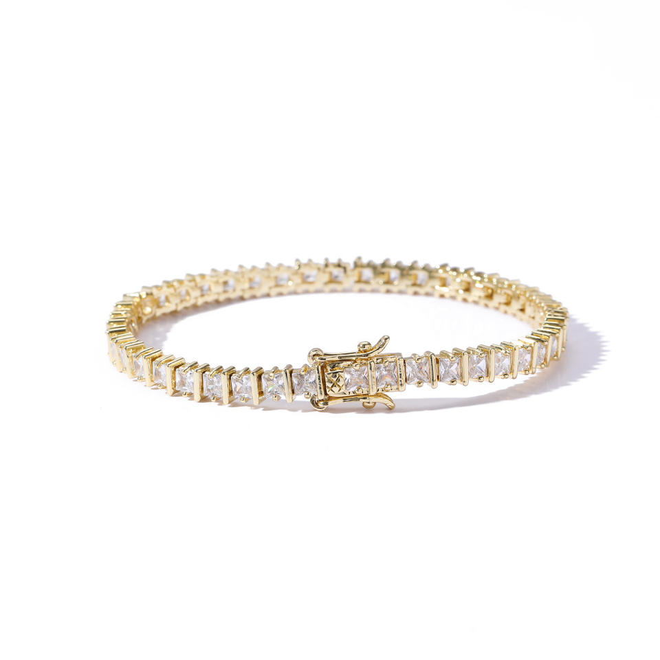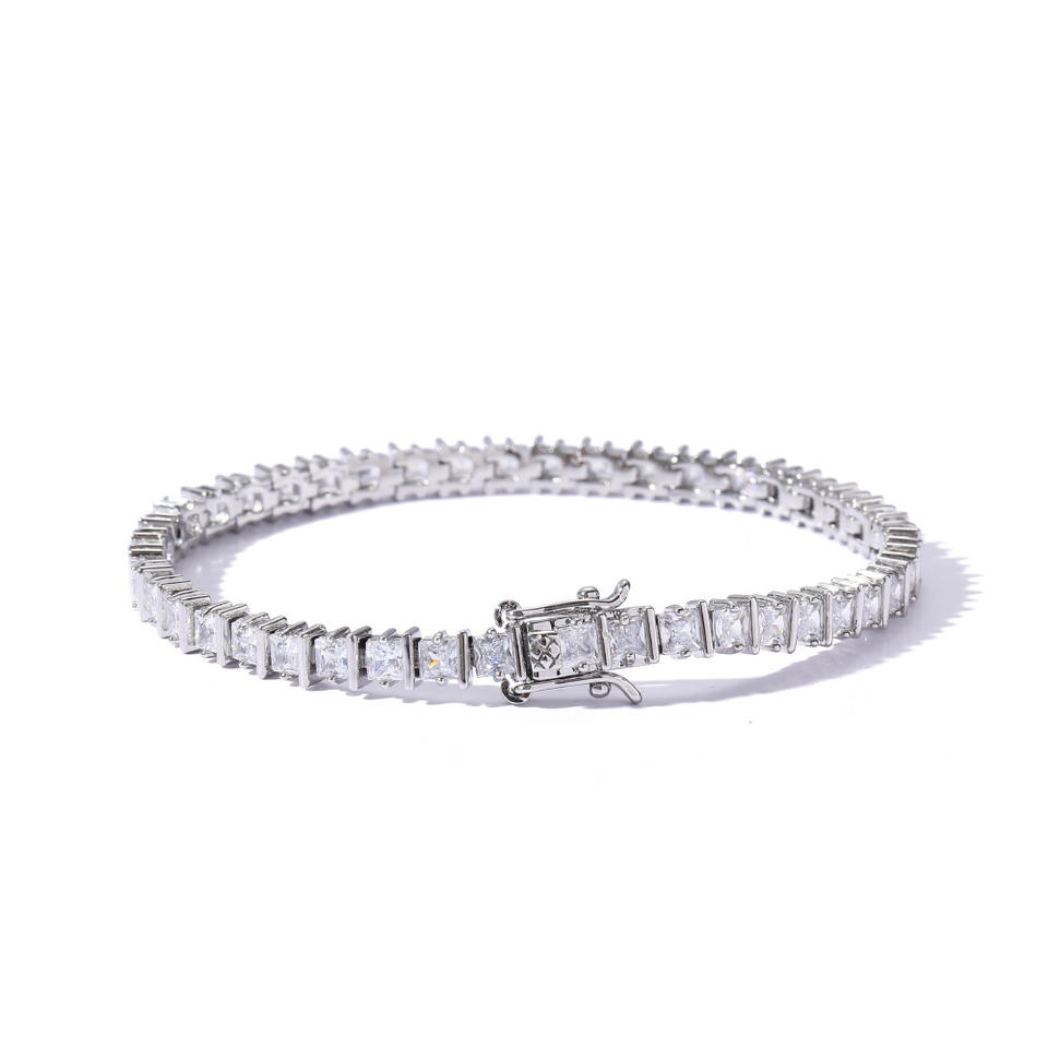 Cadena de Cobre de Una Sola Hilera con Circonitas Cuadradas de 3MM y 2 Garras, Pulsera de Tenis para Hombre Estilo Hip-hop Collar Lijing de Moda Tanjing