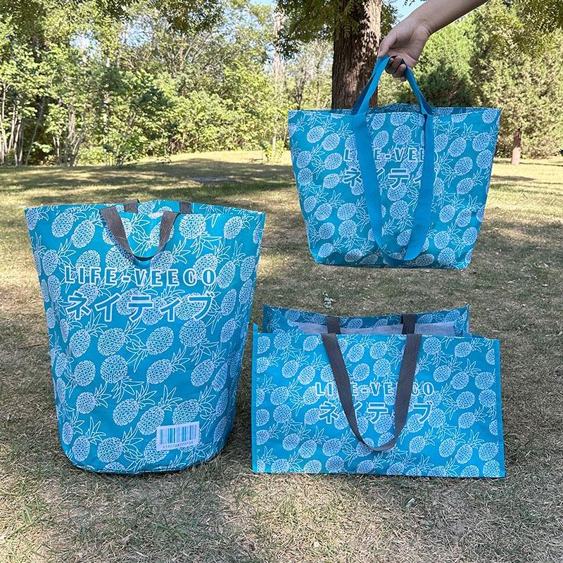 Juego de 3 bolsas creativas para comestibles de 15 pulgadas/20 pulgadas, bolsas de mano tejidas de PP impermeables reutilizables, bolsas de compras grandes con estampado completo de flores
