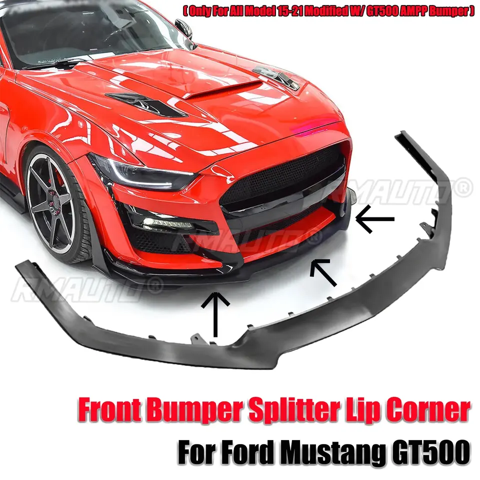 Juego de 3 Piezas de Alerón Delantero para Parachoques, Estilo AMMP Concepts, Negro Brillante y Negro Mate, para Ford Mustang GT500, 2015-2021