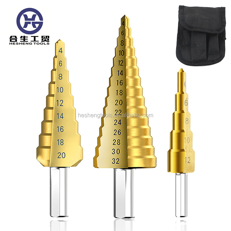 Vástago triangular de titanio métrico HSS, cortador de agujeros en forma de Pagoda, cono de afilado de 4-12/20/32mm, juego de brocas escalonadas, 3 uds.