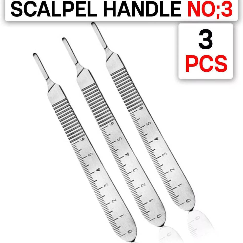 Mango de bisturí de acero inoxidable de 3 uds. #3 con escala Manual, juego de instrumentos médicos dentales, estándar de seguridad certificado CE MOL