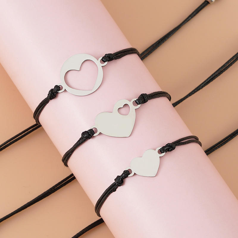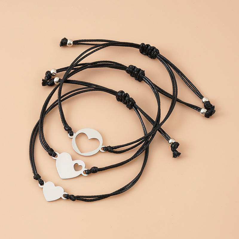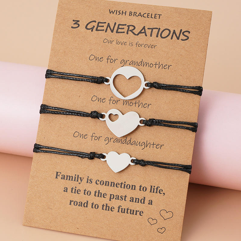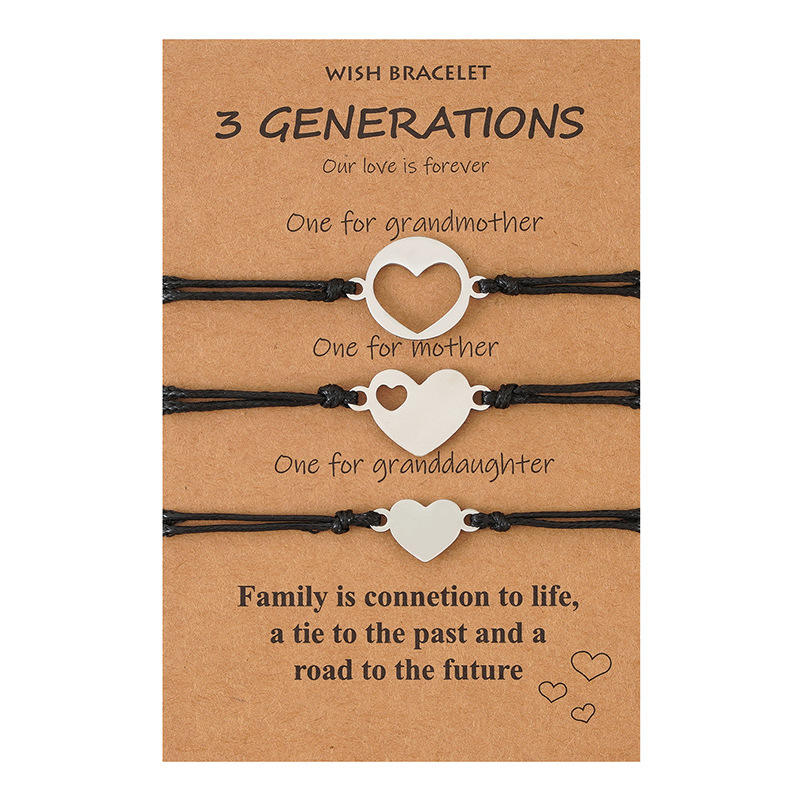 3 unids/set familia 3 generaciones de la pulsera para las mujeres encanto ajustable cuerda tejida corazón mamá abuela hija amante de la joyería, regalos