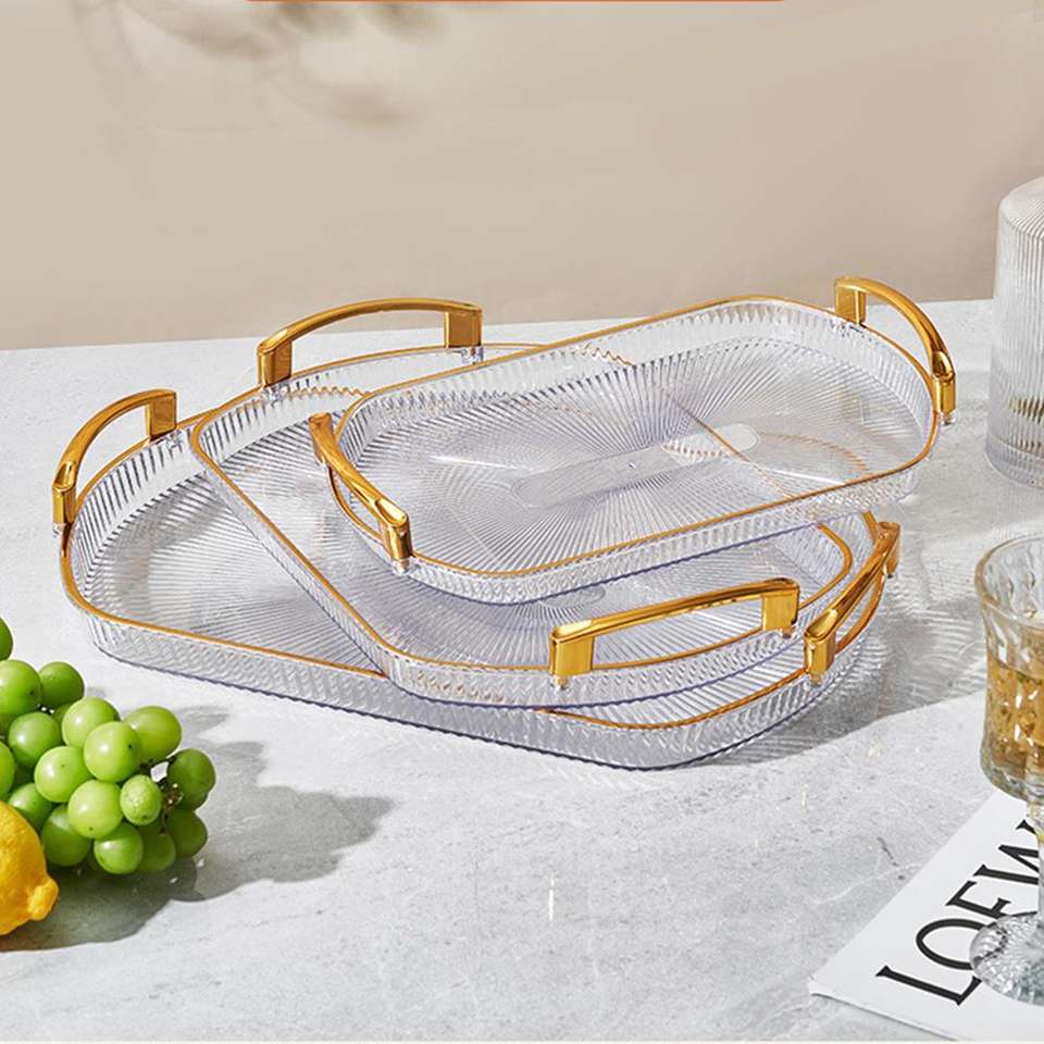 Juego de 3 Bandejas Ovaladas de PET de Alta Calidad para Frutas, Pan y Aperitivos, para Sala de Estar, Hogar, Recepción de Hotel