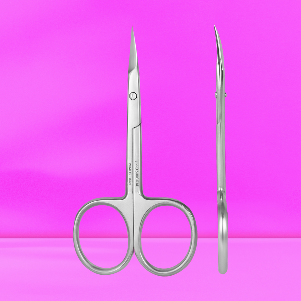 Tijeras Profesionales para Cutículas 3Pro, Cuidado de Uñas SP-11-18, Pedicura, Hoja Recta y Curva, Mango de Cerámica y Plástico, Logotipo Personalizado