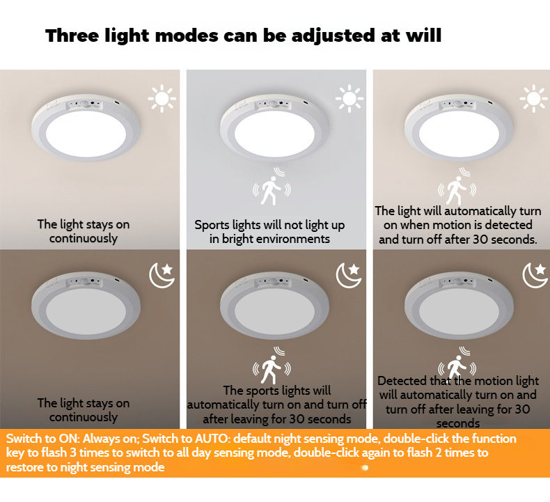Foco LED con Sensor de movimiento PIR automático de 3W, lámpara de techo inalámbrica 3CCT con pantalla blanca para iluminación moderna para el hogar/La Oficina