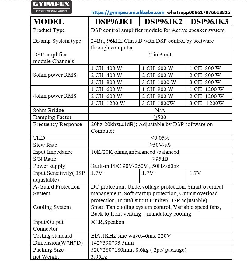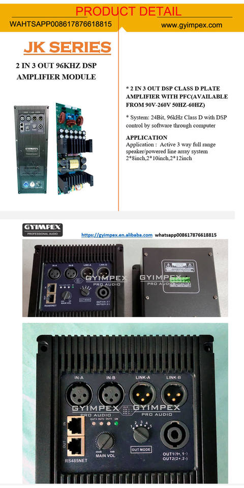 tipo:Placa amplificadora DSP Clase D de 3 canales, 2 entradas y 3 salidas con PFC
