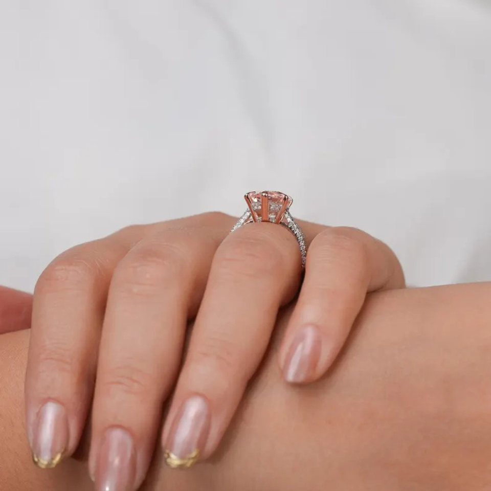 Color de la piel:Rosa Fancy (piedra central) y EF (piedras laterales)