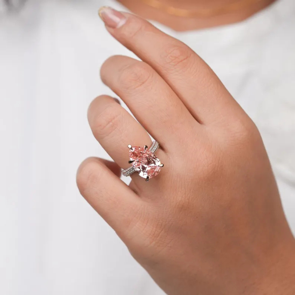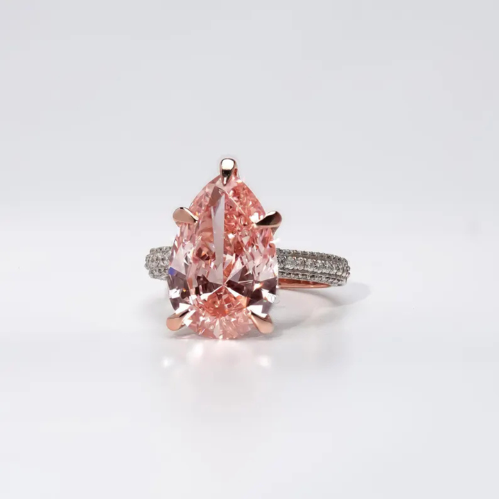 Nombre del Producto:Anillo de Diamante de Laboratorio Corte Pera Rosa Intenso Fancy