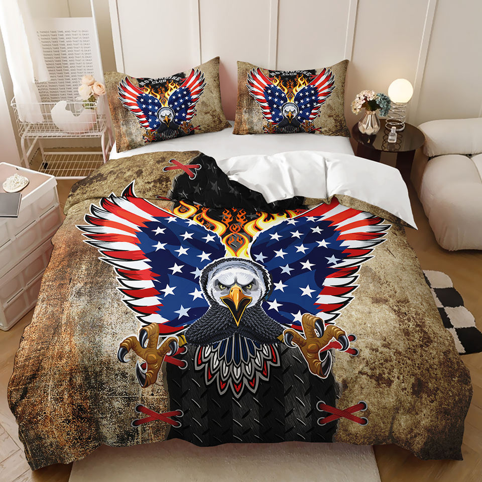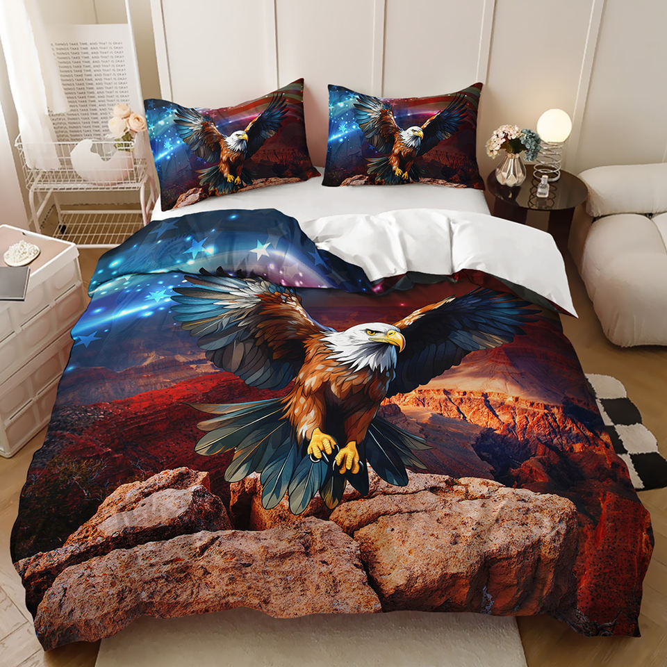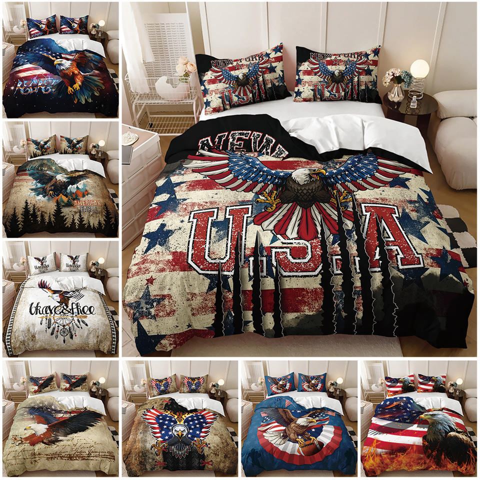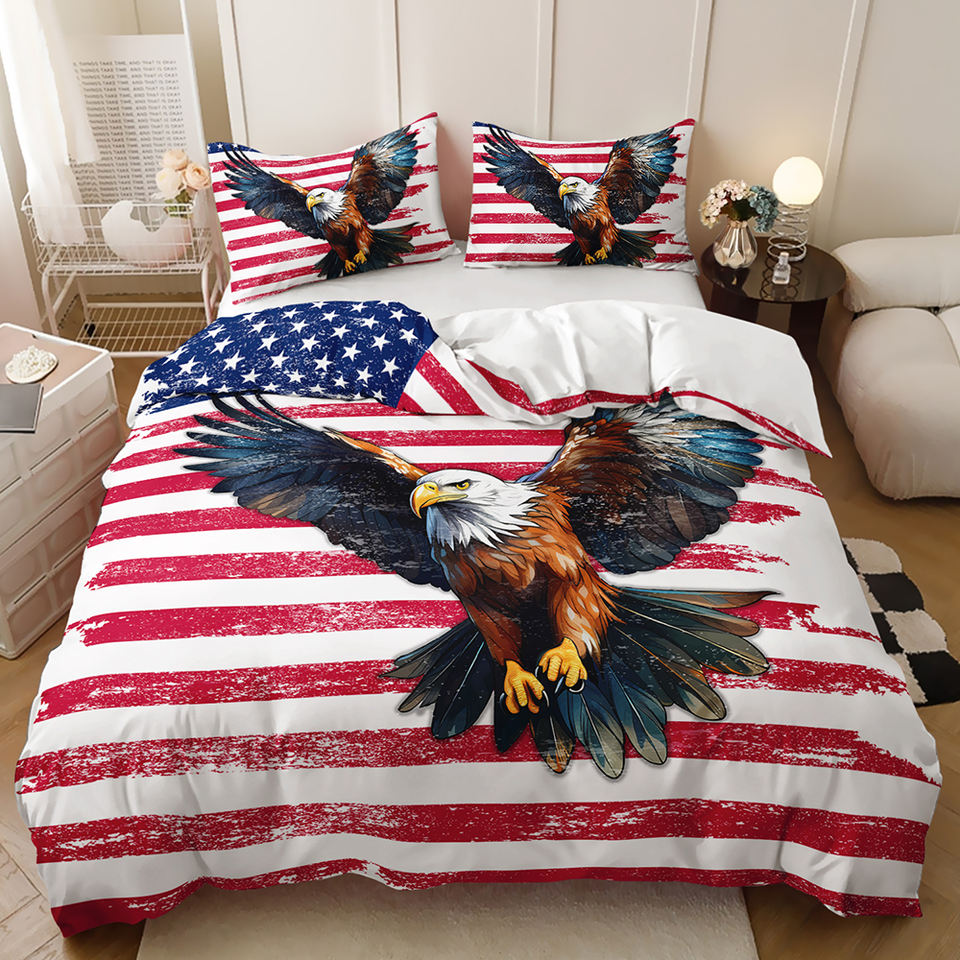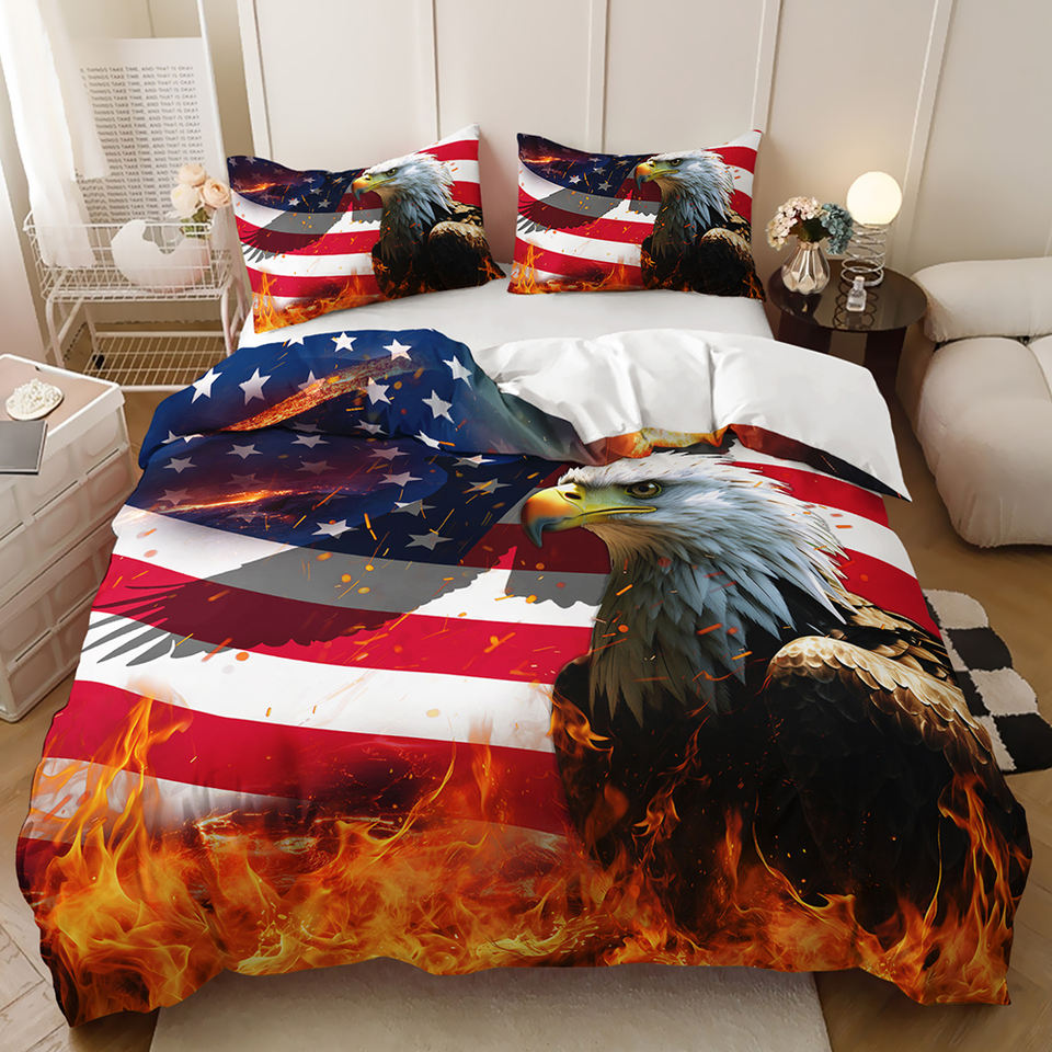 Juego de Funda Nórdica con Estampado Digital 3D Personalizado, Imagen del Día de la Independencia, Bandera Roja, Blanca y Azul, Totem de Águila