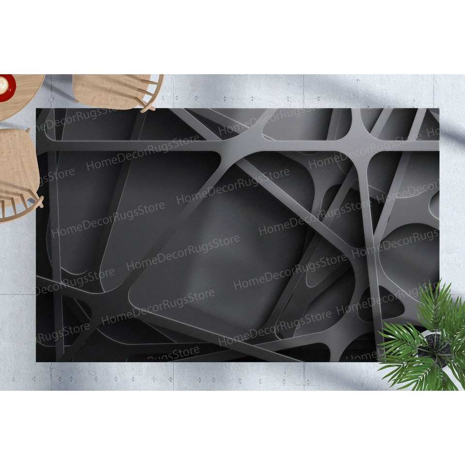 Alfombra con Efecto 3D, Alfombra Negra Moderna de Lujo para Sala de Estar, Alfombra de Chenilla