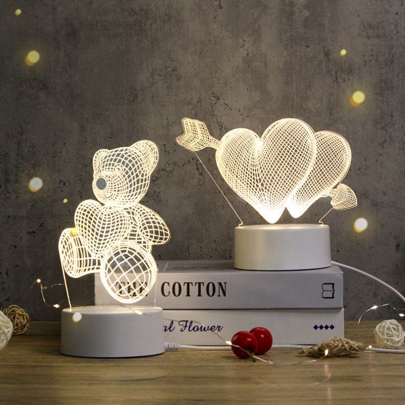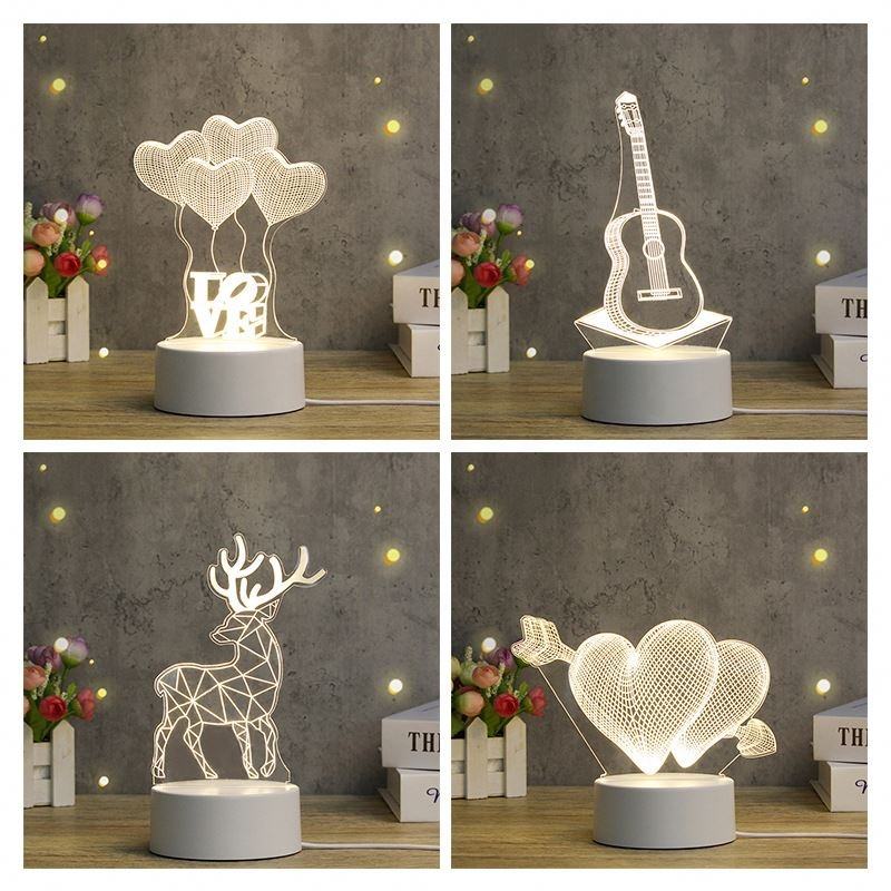 Lámparas Led de ilusión 3d, minilámparas acrílicas cálidas de dibujos animados creativos, decoración de escritorio, luces nocturnas