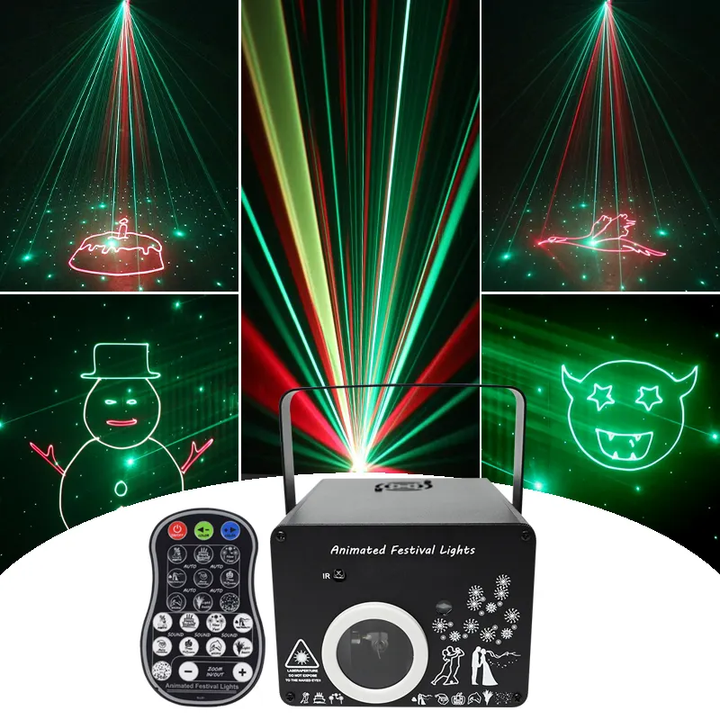 Proyector láser 3D cubo láser Navidad vacaciones iluminación animal animación lámpara para Halloween Club DJ luces disco DMX Luz