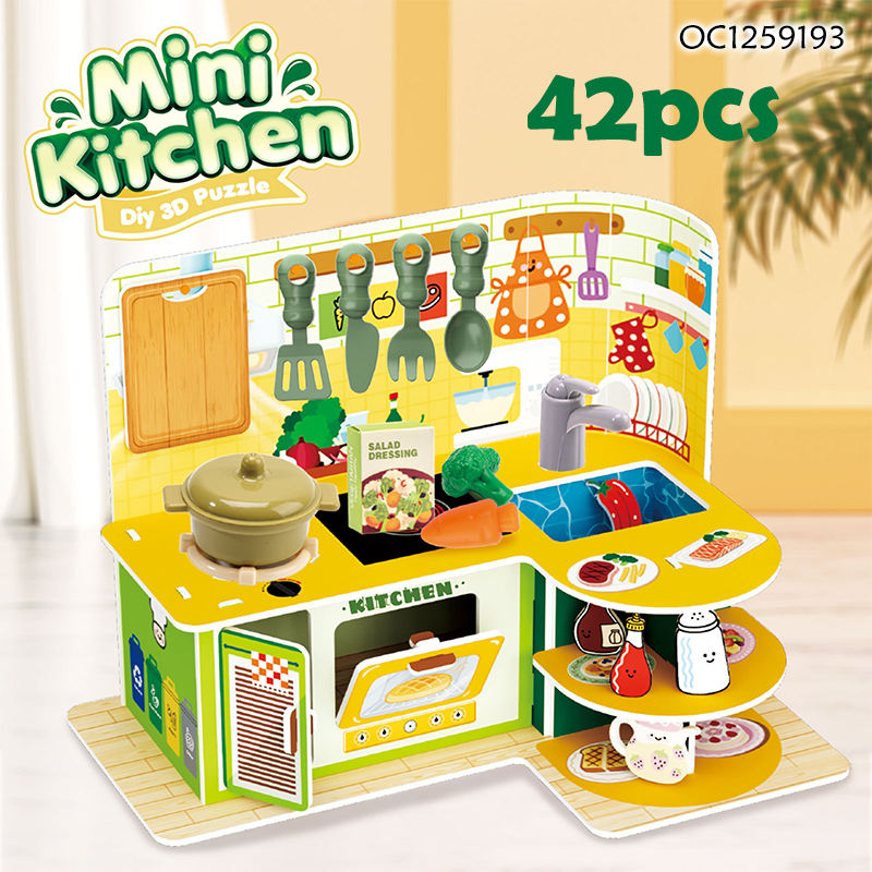 Rompecabezas Educativos de Cartón en 3D, Casa de Muñecas en Miniatura, Juego de Cocina para Niñas, Kit con Utensilios de Cocina