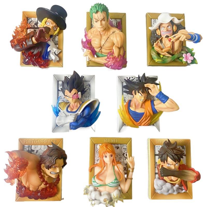 Adorno de Marco de Fotos 3D, Hecho a Mano, Creativo, Adhesivo para Refrigerador de Anime, Figura de Luffy, Ace, Zoro, Sanji, Vegeta, Son Goku