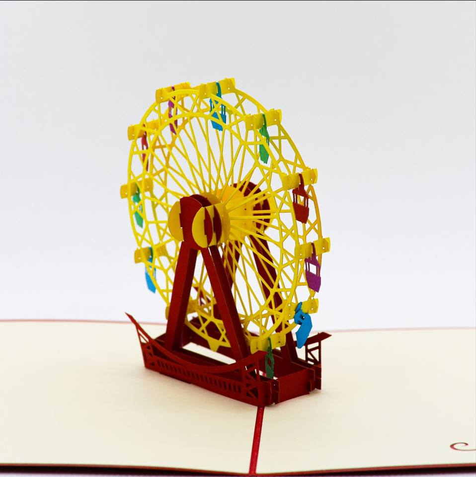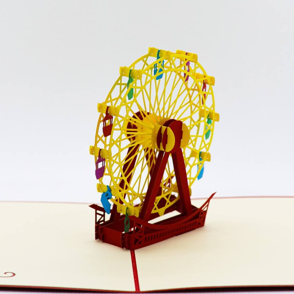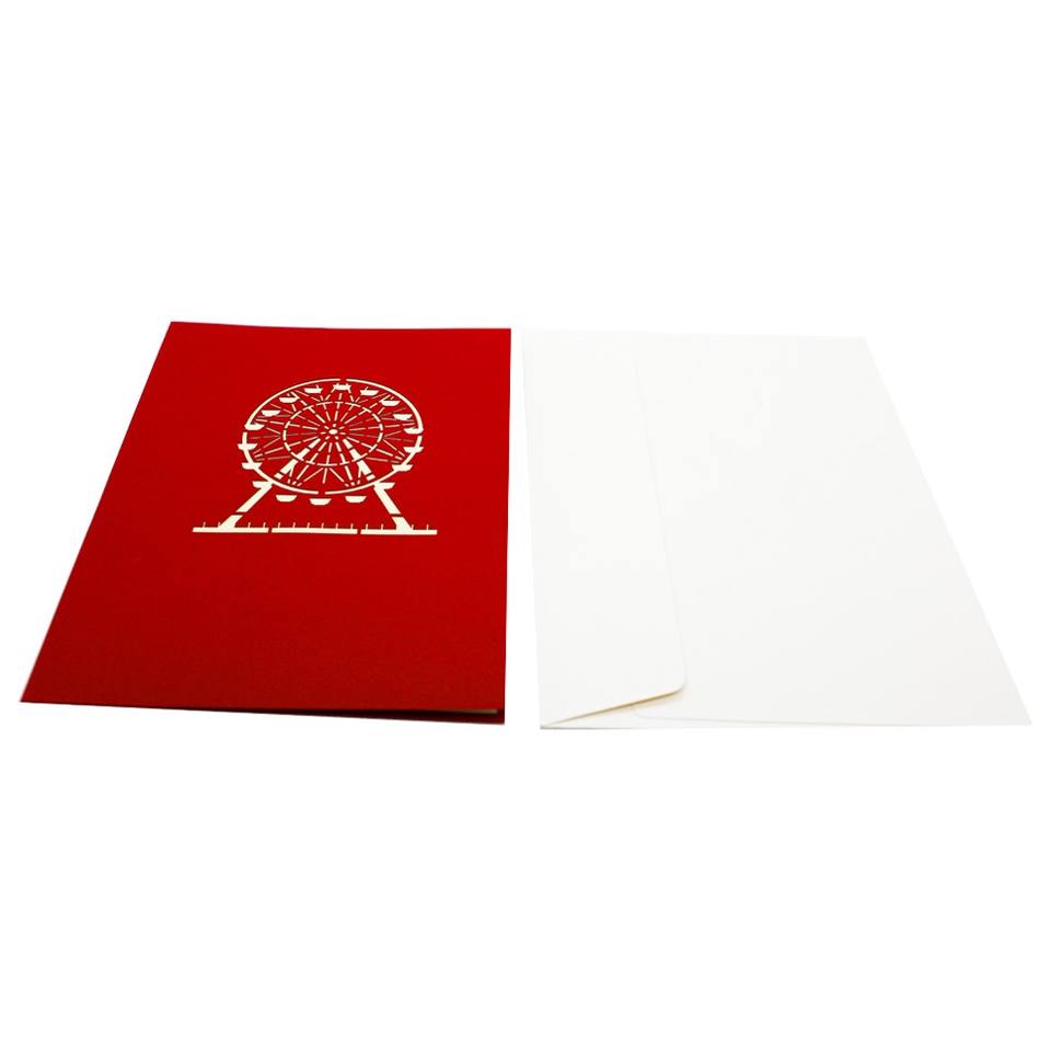 Tarjeta Pop-Up 3D con Diseño de Rueda de la Fortuna, Tarjeta de Felicitación 3D para Novio o Amigo, Impresión Offset, Estilo Romántico