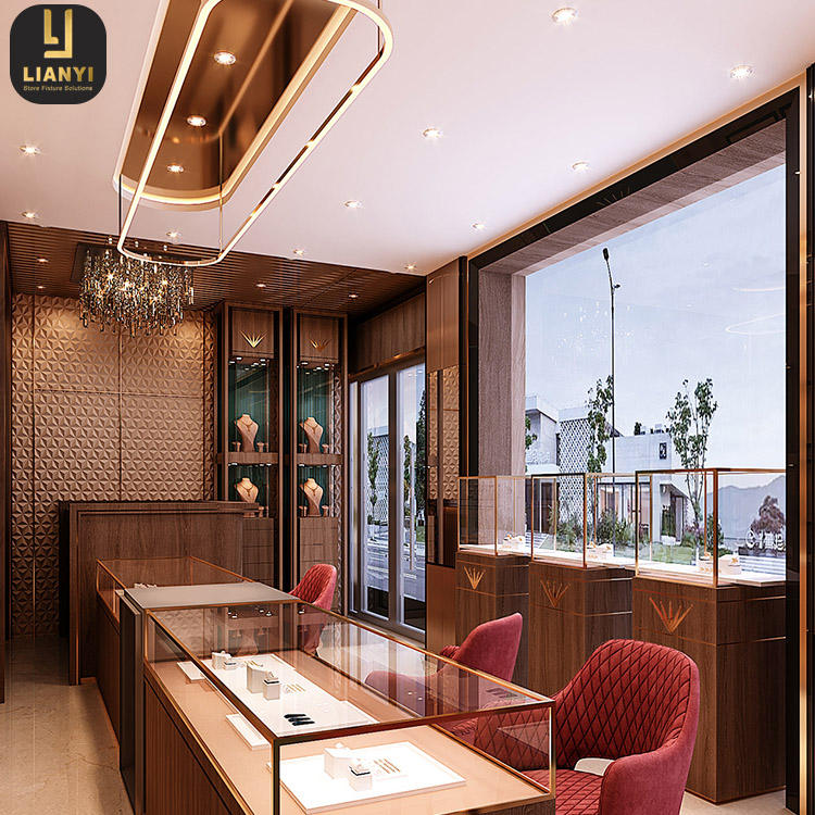 Representación 3D Joyería Interior Muebles de madera Joyería de pared Diseño de muebles