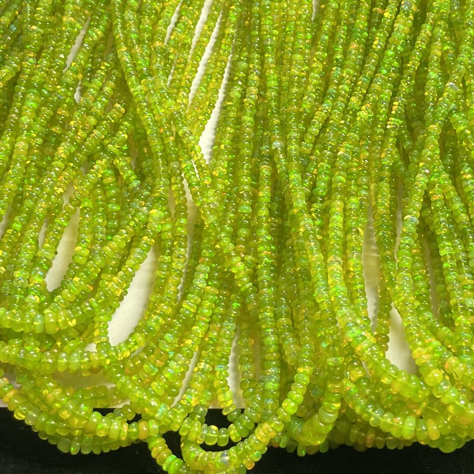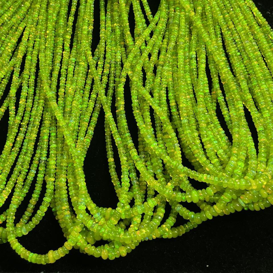 Product Name:Natural Peridot Parrot Green Ethiopian Opal Smooth Rondelle Beads