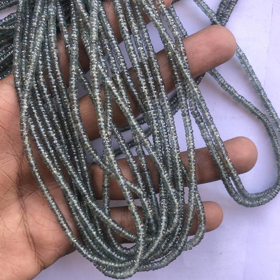 Product Name:Natural Green Sapphire Faceted Heishi/Tyre Gemstone Beads Strand