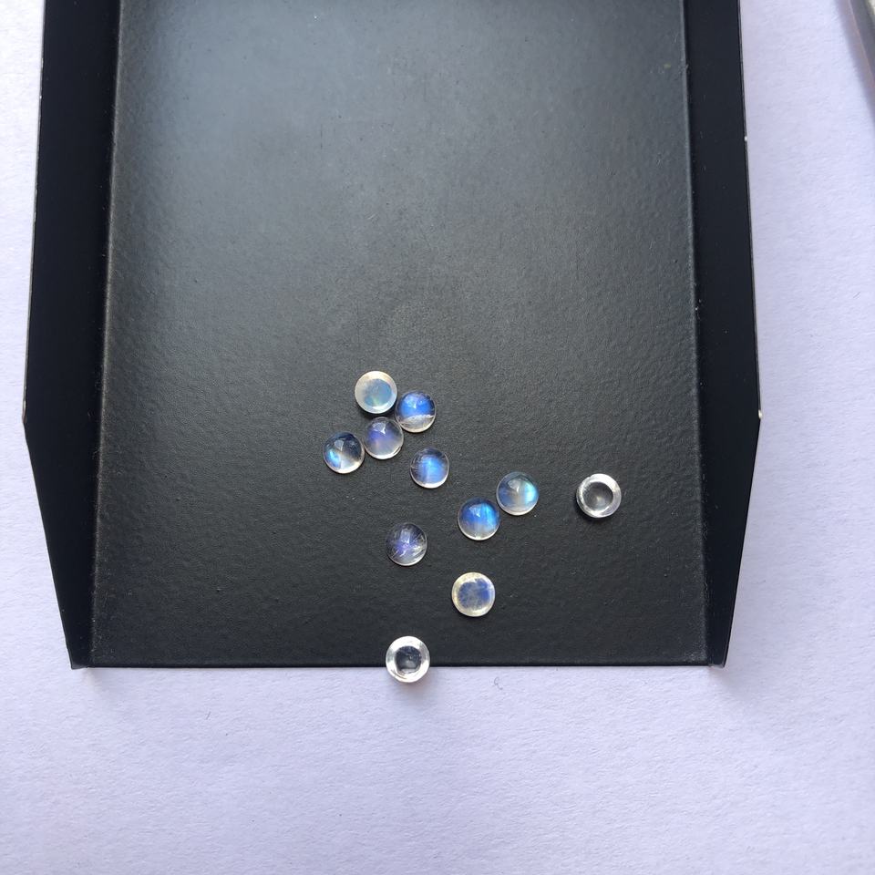 Nombre del Producto:Cabujón de piedra lunar arcoíris natural de 3 mm, redondo y de parte posterior plana