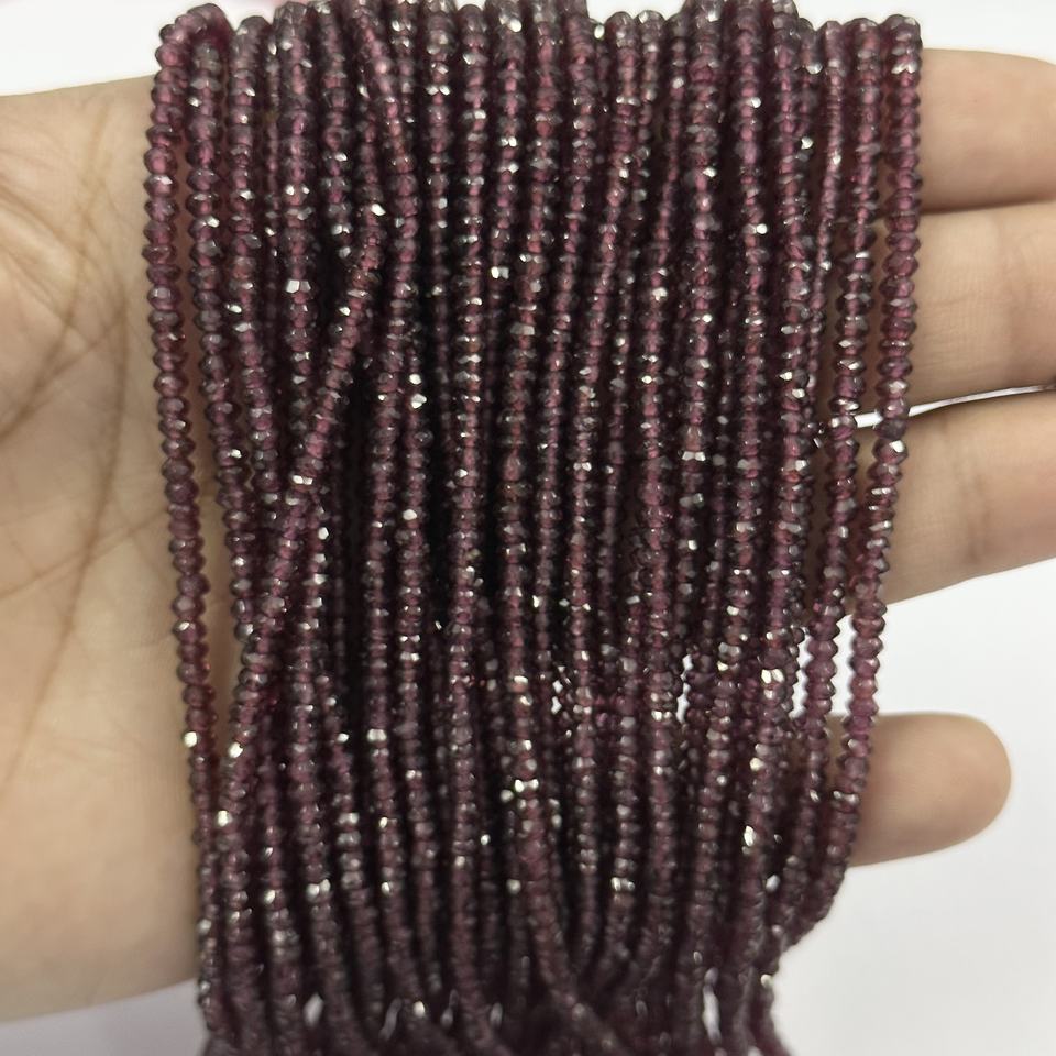Cuentas de piedras preciosas sueltas con forma de Rondelle facetadas de granate rodolita Natural de 3mm para joyería y fabricación artesanal precio al por mayor producto a granel