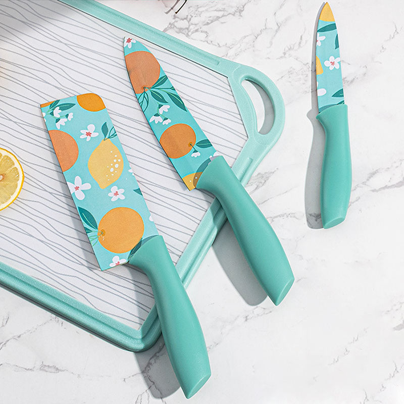 Juego De Cuchillos De Cocina De alta calidad, 3 uds, cuchillo De pelar De utilidad De Chef, Juego De Cuchillos Para Cocina, cuchillos estampados con flores