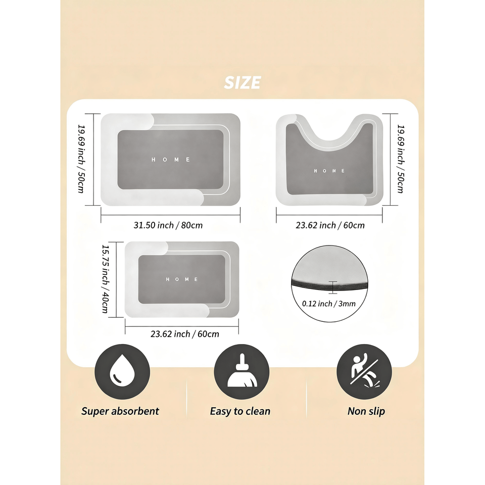 Juego de 3 Alfombrillas de Baño de Secado Rápido, Absorbentes y Antideslizantes con Base de Goma para Baño, Cocina, Ducha y Fregadero