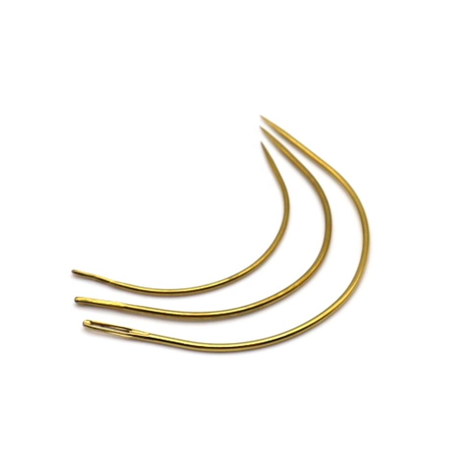 Aguja curvada de extensión de cabello 100% humano para costura, herramienta de aguja de extensión de cabello Remy e hilo, 3 uds. Por paquete