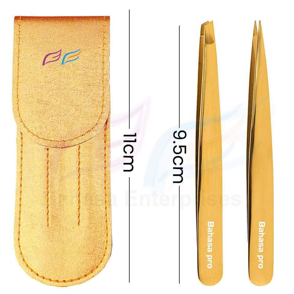 Juego de 3 Pinzas de Depilar Inclinadas Doradas de Plasma y Tijeras de Resorte para Depilación, Uso Estético, con Estuche de PU