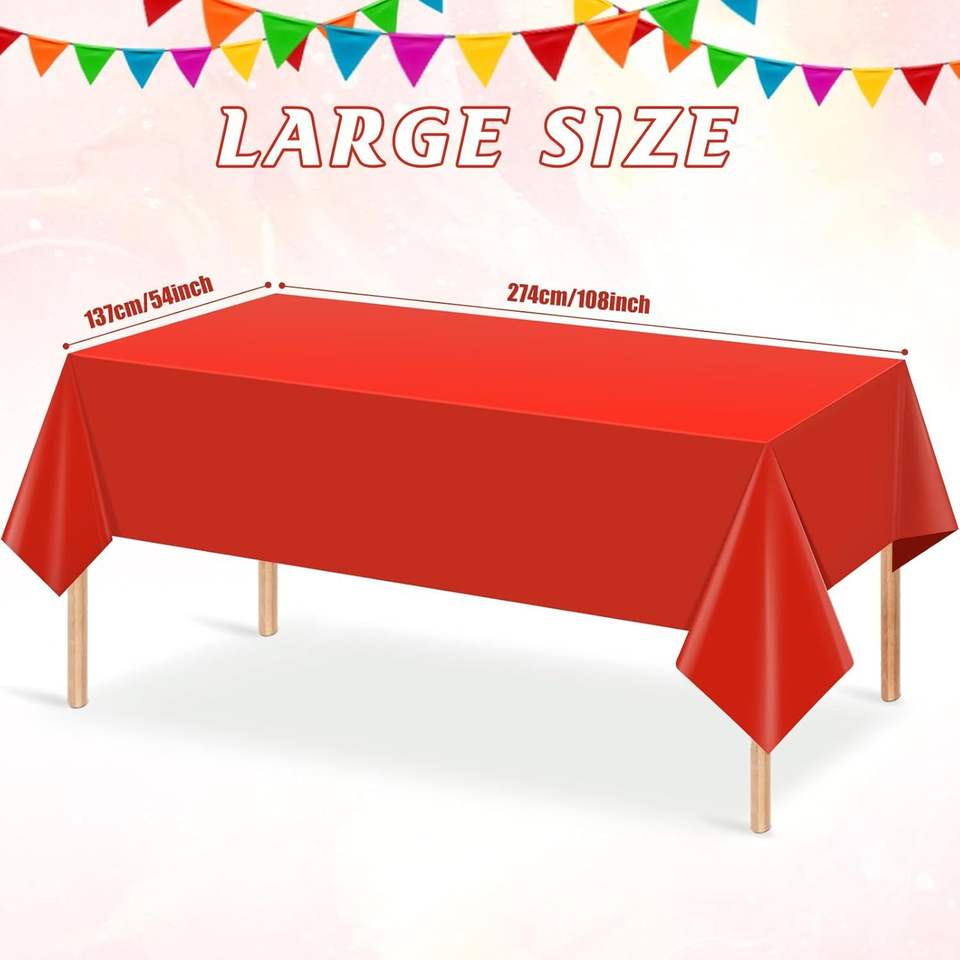 3 Manteles Desechables de Plástico Rojos Rectangulares, Impermeables, para Graduaciones, Cumpleaños, Bodas y Aniversarios