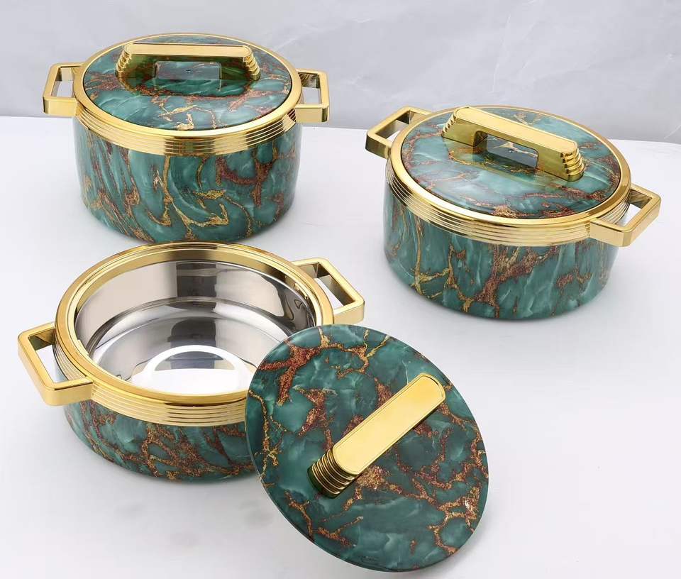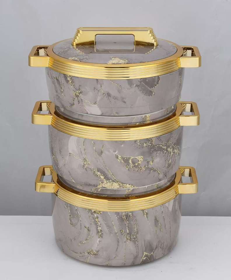 Juego de 3 Piezas de Ollas Térmicas de Alta Calidad con Diseño de Mármol, 1.5L, 2L y 2.5L, para Mantener Alimentos Calientes, Utensilios de Cocina Modernos
