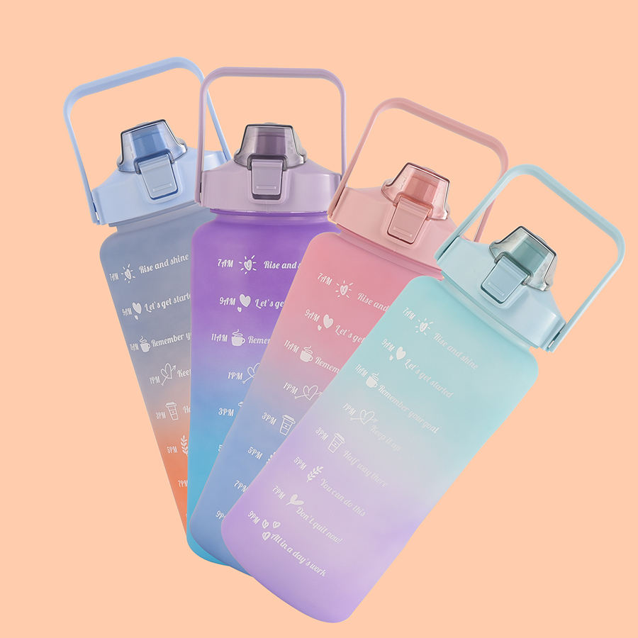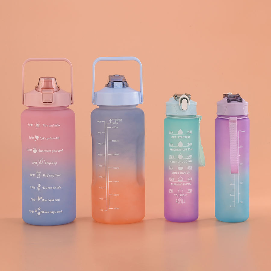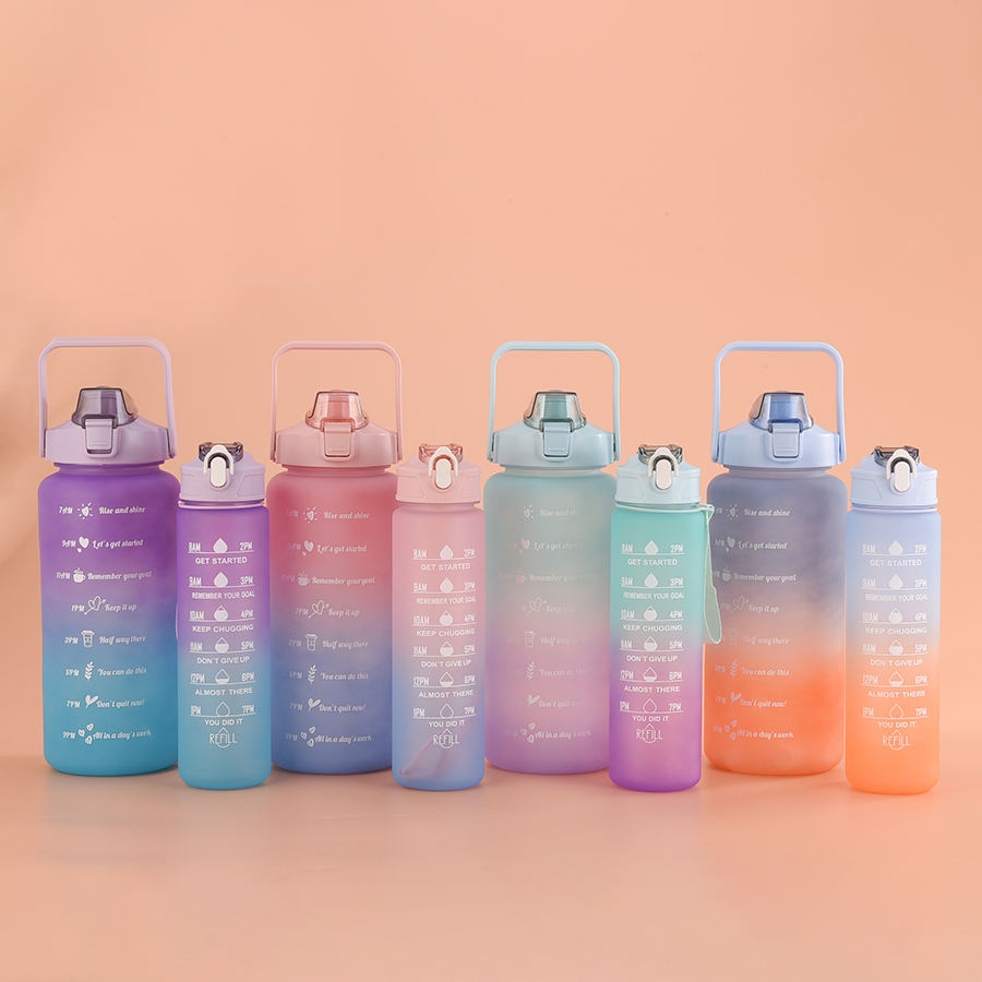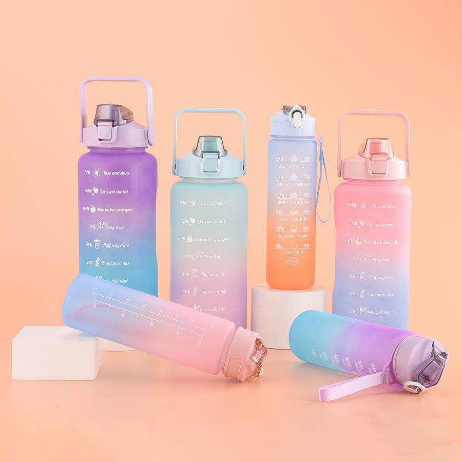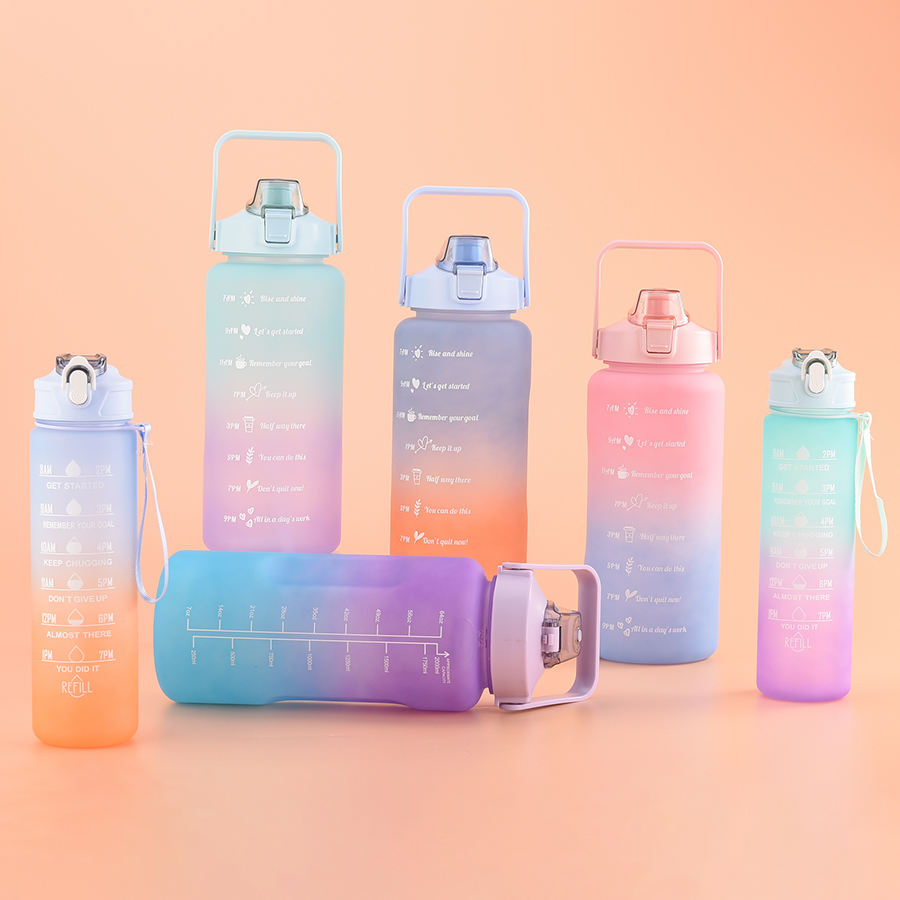 Juego de 3 Botellas de Agua de Plástico Degradado de 2000 ml, 900 ml y 500 ml, Botellas de Agua de Plástico Esmerilado Portátiles de 2 L