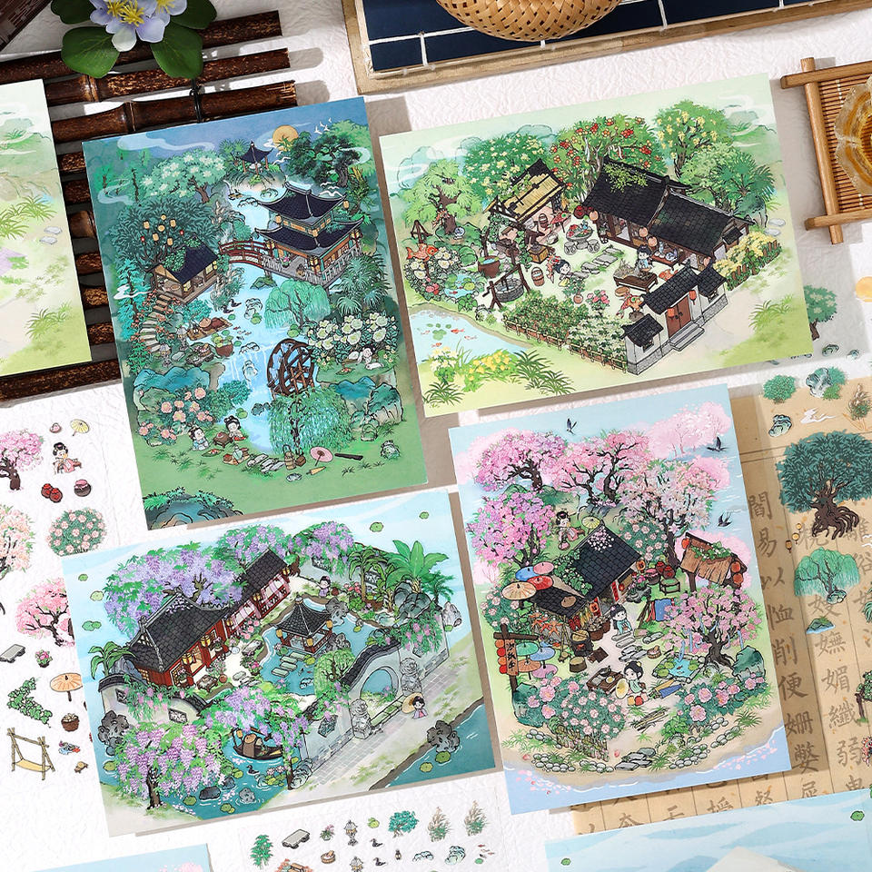 3 unids/pack 2.5D pegatinas de paisaje de estilo antiguo My Hut Fourth Bullet pegatinas de Decoupage DIY de gran tamaño