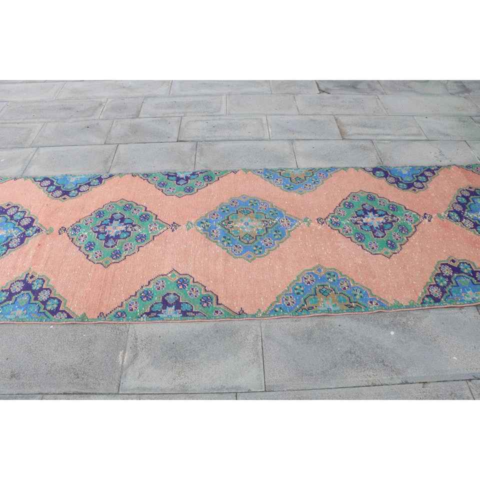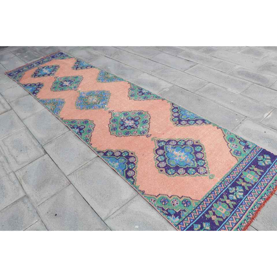 Alfombra de 3x11.8 pies, Alfombra Turca Vintage, Alfombra de Lana Azul