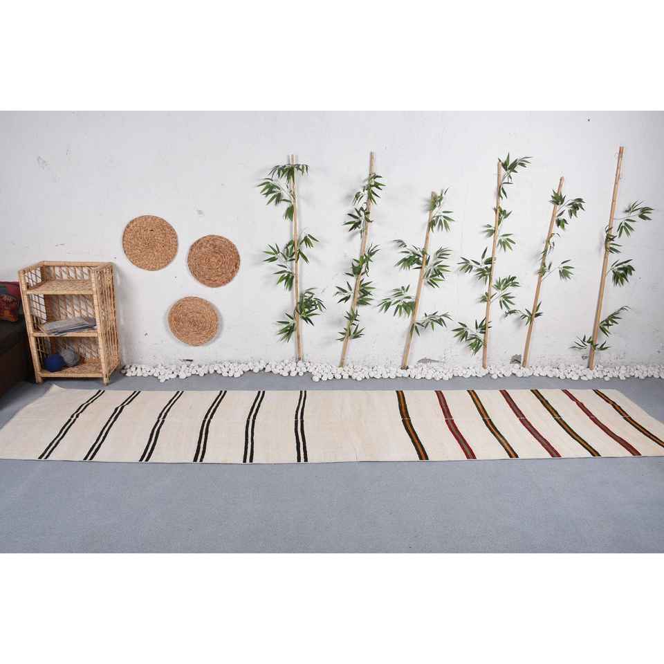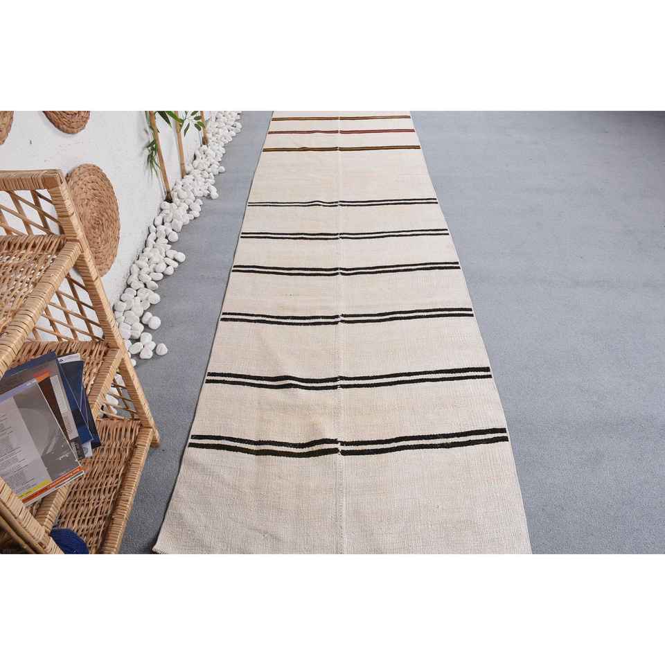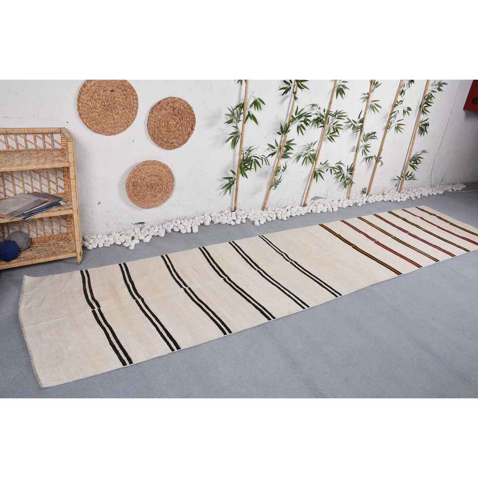 Alfombra Turca de 3x13 pies, Alfombra Kilim, Alfombra Beige del Suroeste, de Lana