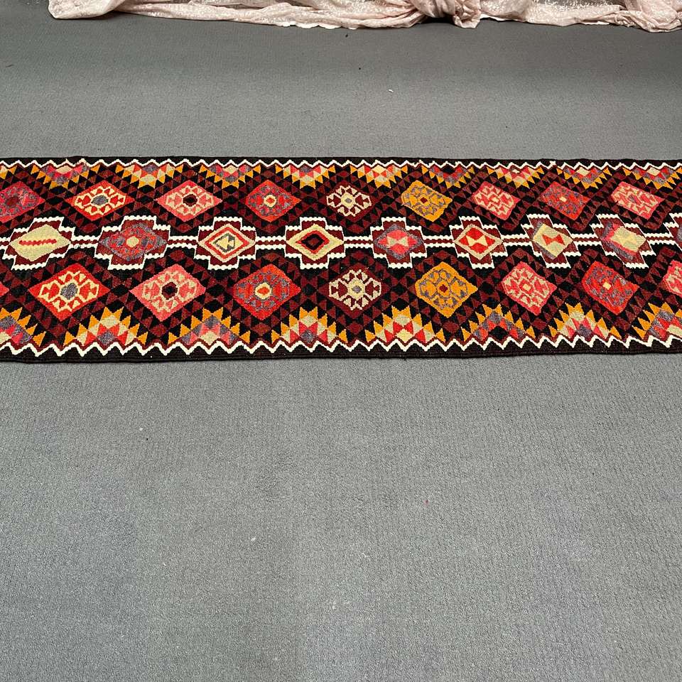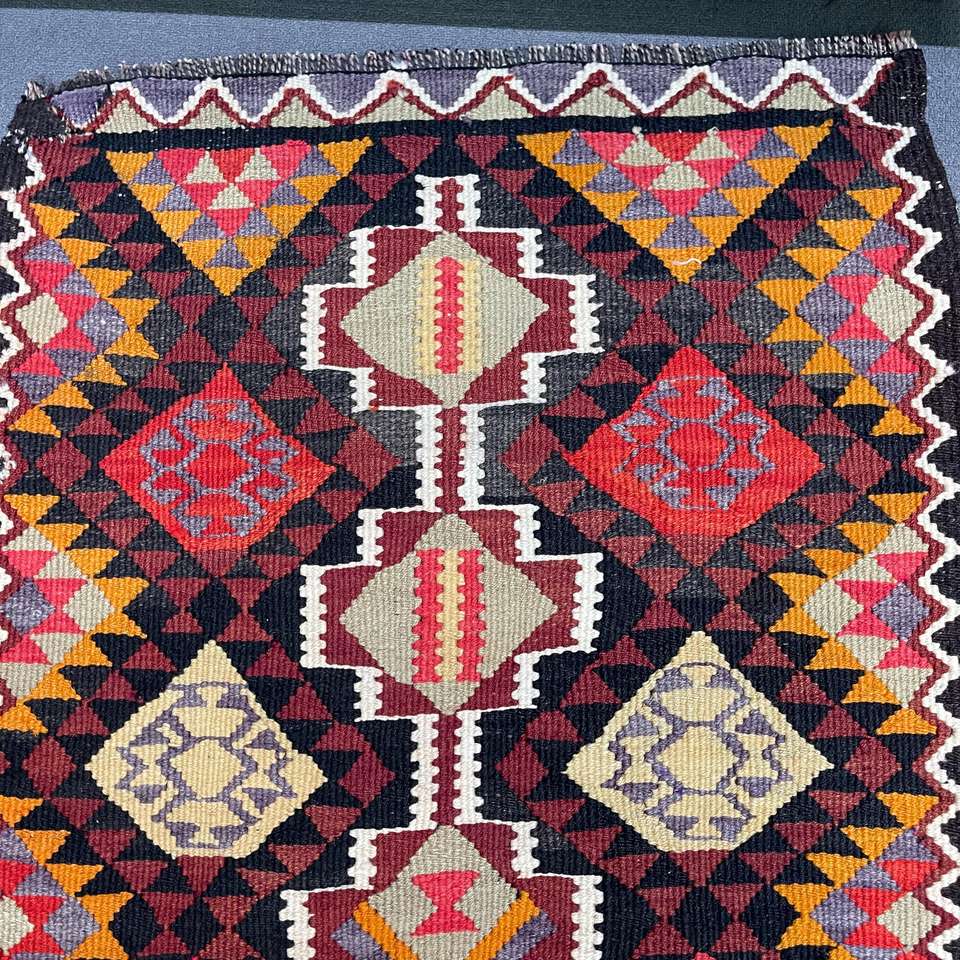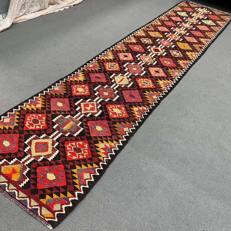Alfombra Turca Vintage de 3x13 pies, Alfombra de Pasillo, Alfombra de Lana Sólida Roja y Amarilla
