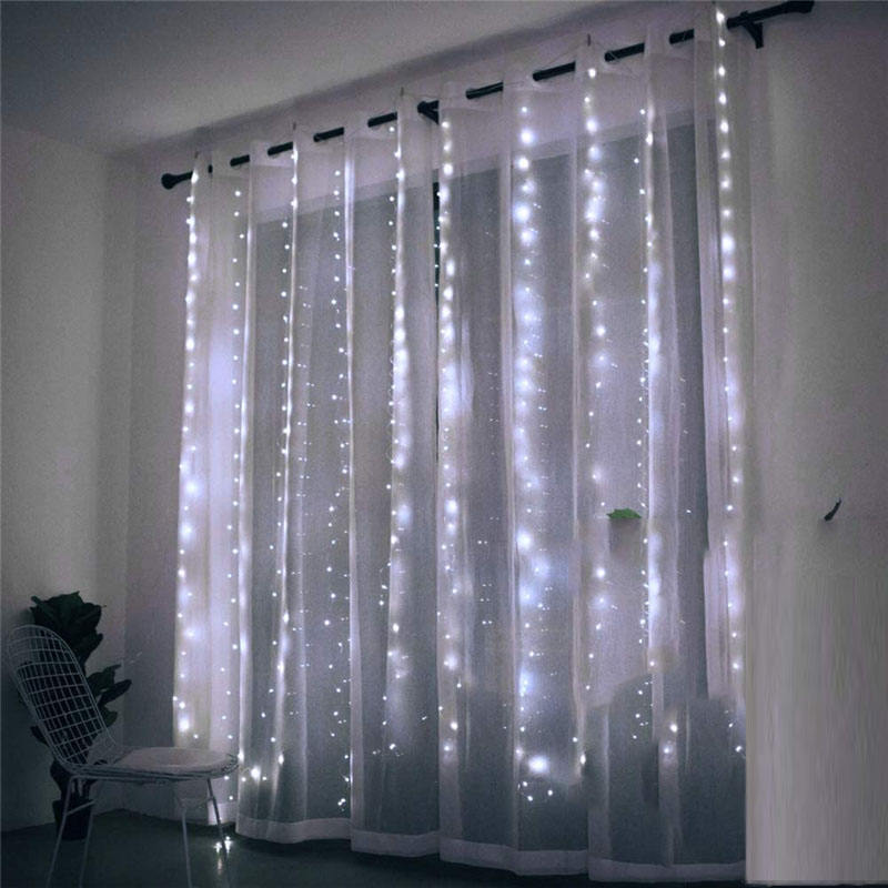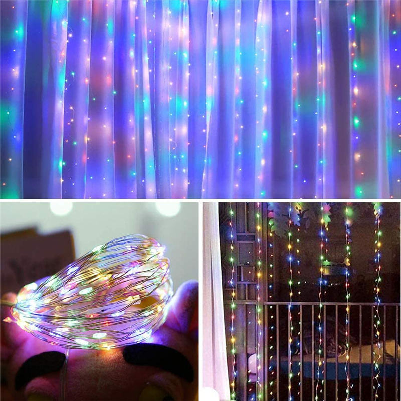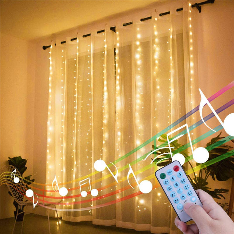 Guirnalda de Luces LED de 3x3m, 300 LED, 8 Modos, Música, Control Remoto, Cortina de Luces de Cobre para Ventana, Cascada de Luces, Decoración Navideña para Interiores, Dormitorio