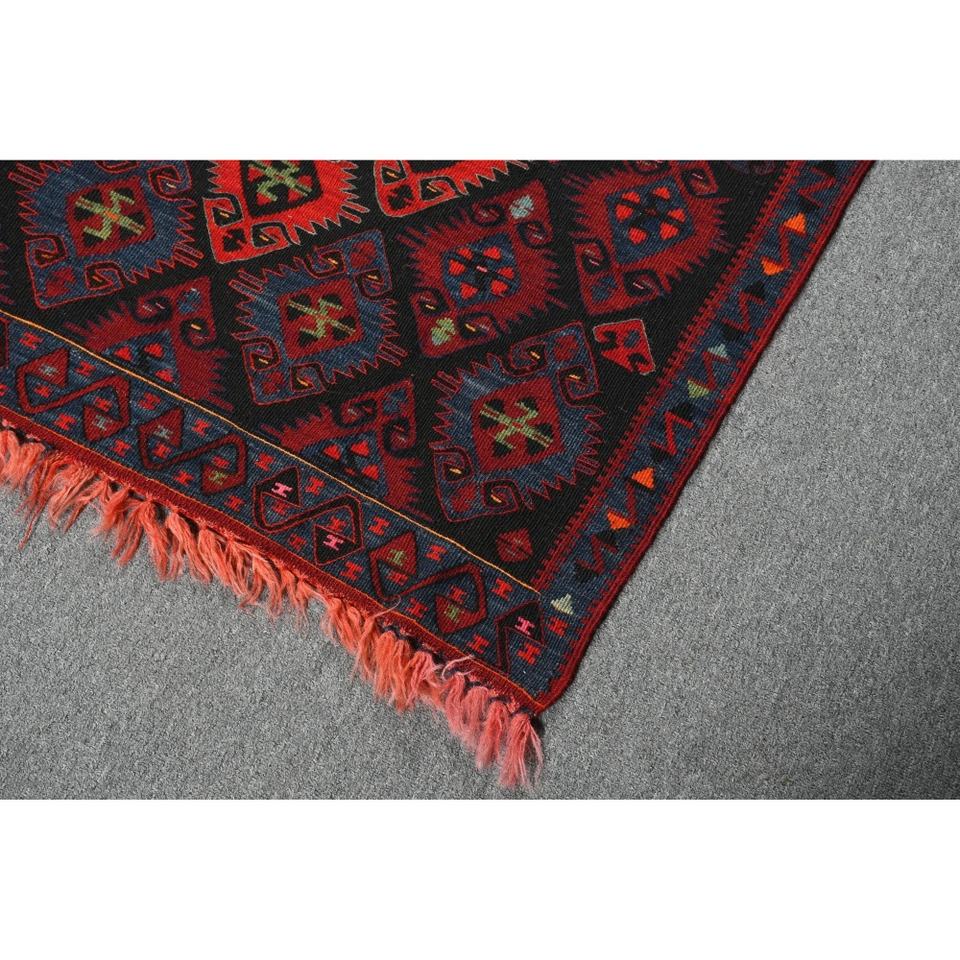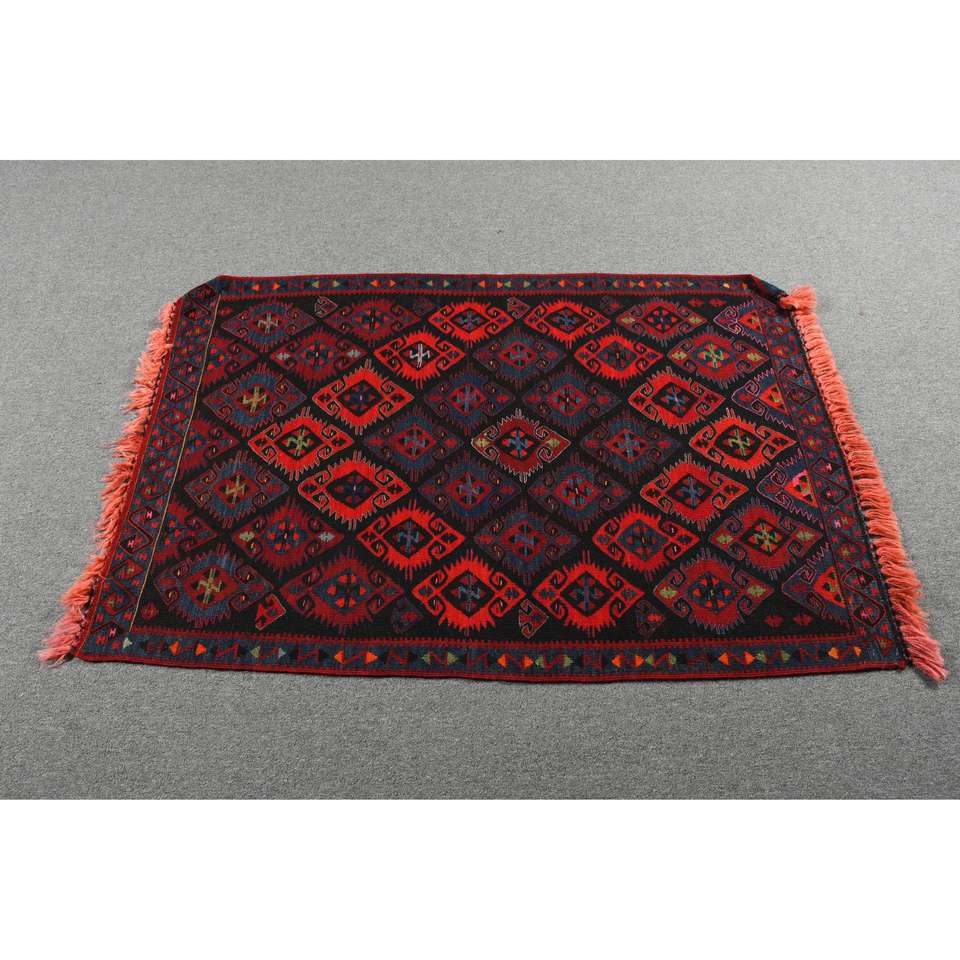 Alfombra Vintage de 3x4.4 pies, Alfombra Turca Pequeña, Alfombra Abstracta Roja y Azul