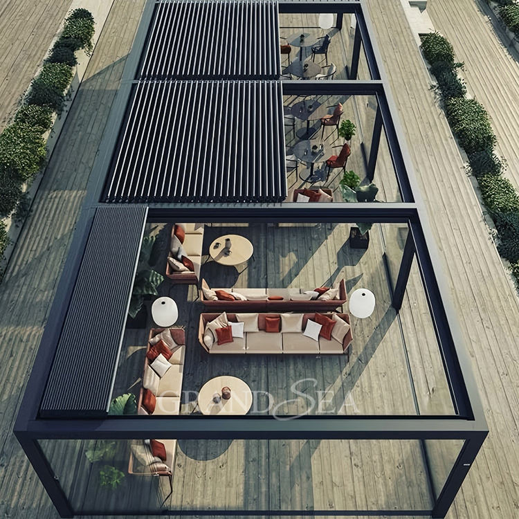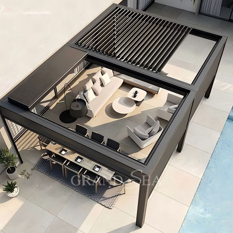 Sistema de pérgola retráctil automático 3x4, Mirador de patio trasero exterior moderno, toldo de techo motorizado de aluminio impermeable
