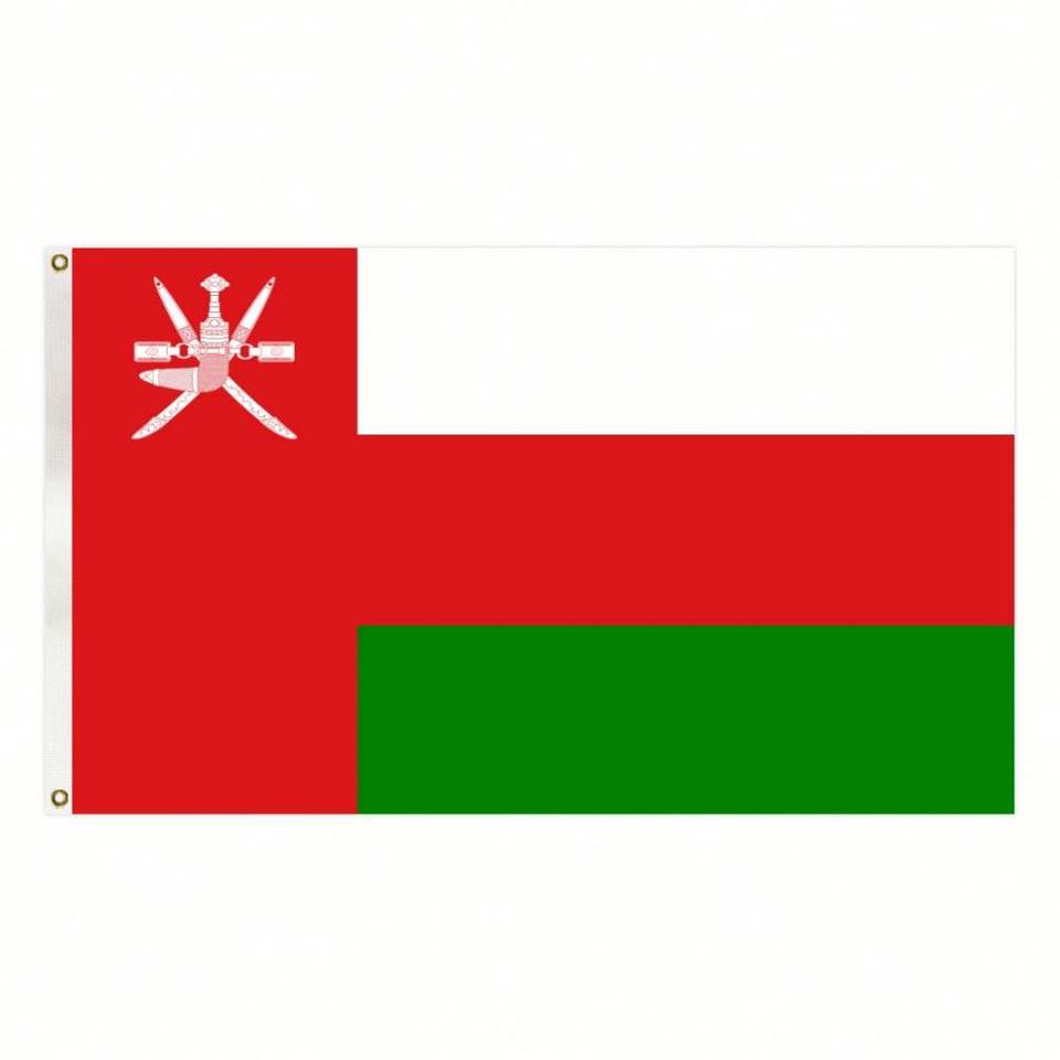 Bandera de Omán de poliéster de 3x5 pies a precio económico y bandera nacional con dos ojales