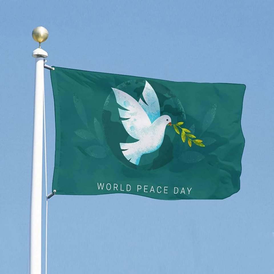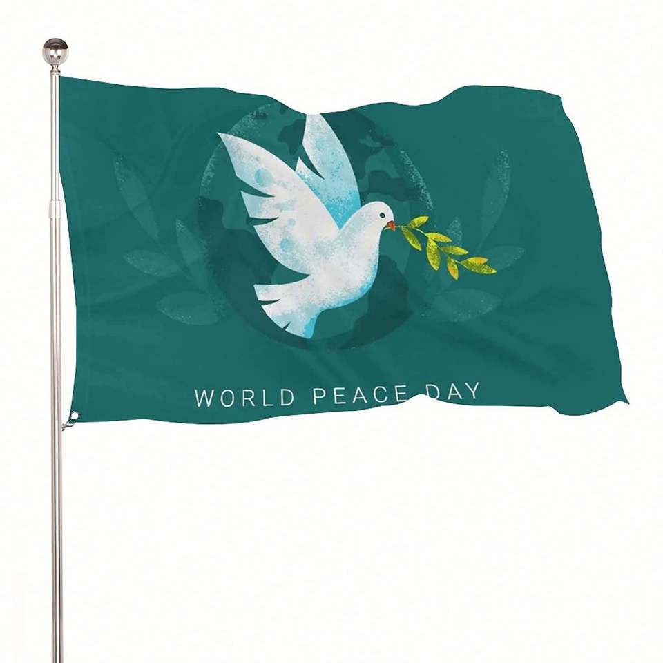 Banderas de la paz de 3x5 pies de poliéster personalizadas y duraderas con la imagen del paloma de la paz para decoración interior y exterior.