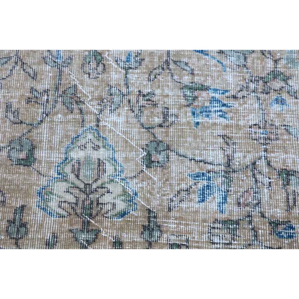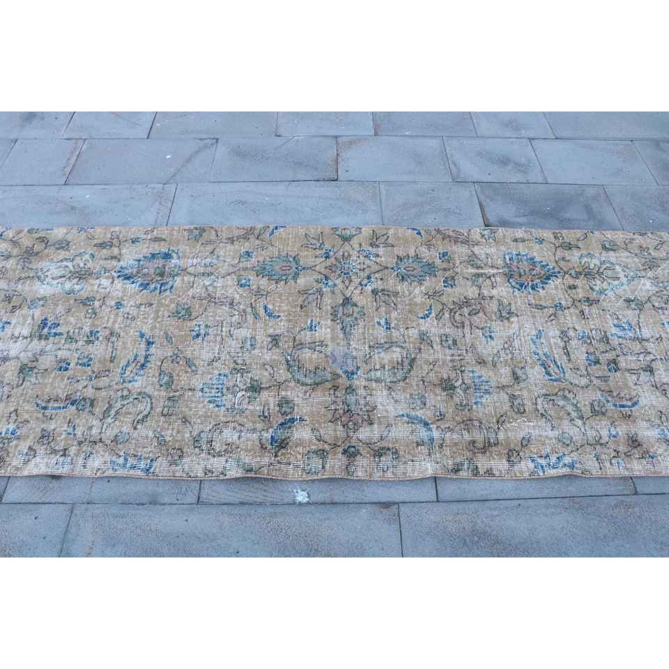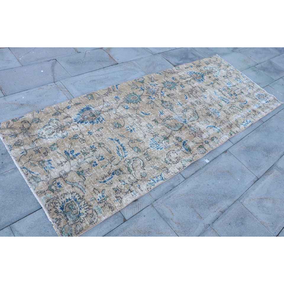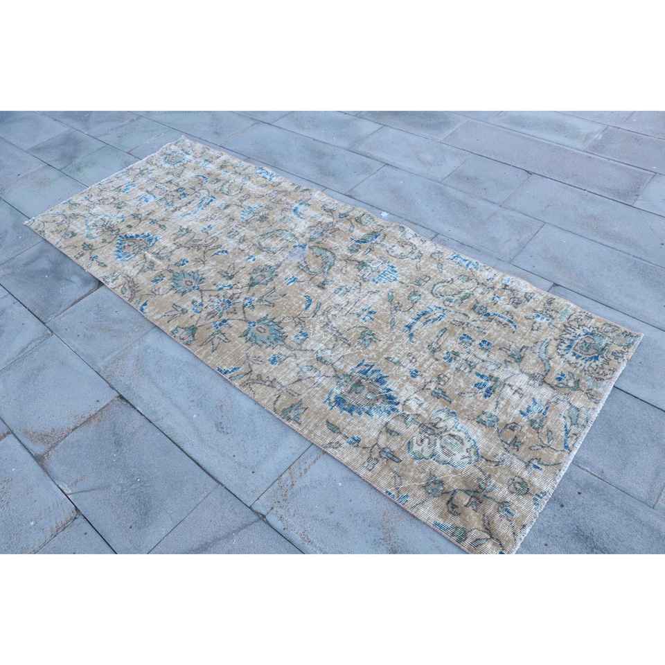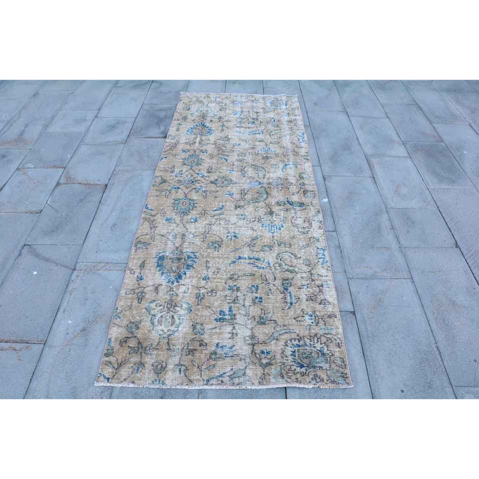 Alfombra turca de 3x7.6 pies, alfombra vintage con motivos de plantas y árboles azules