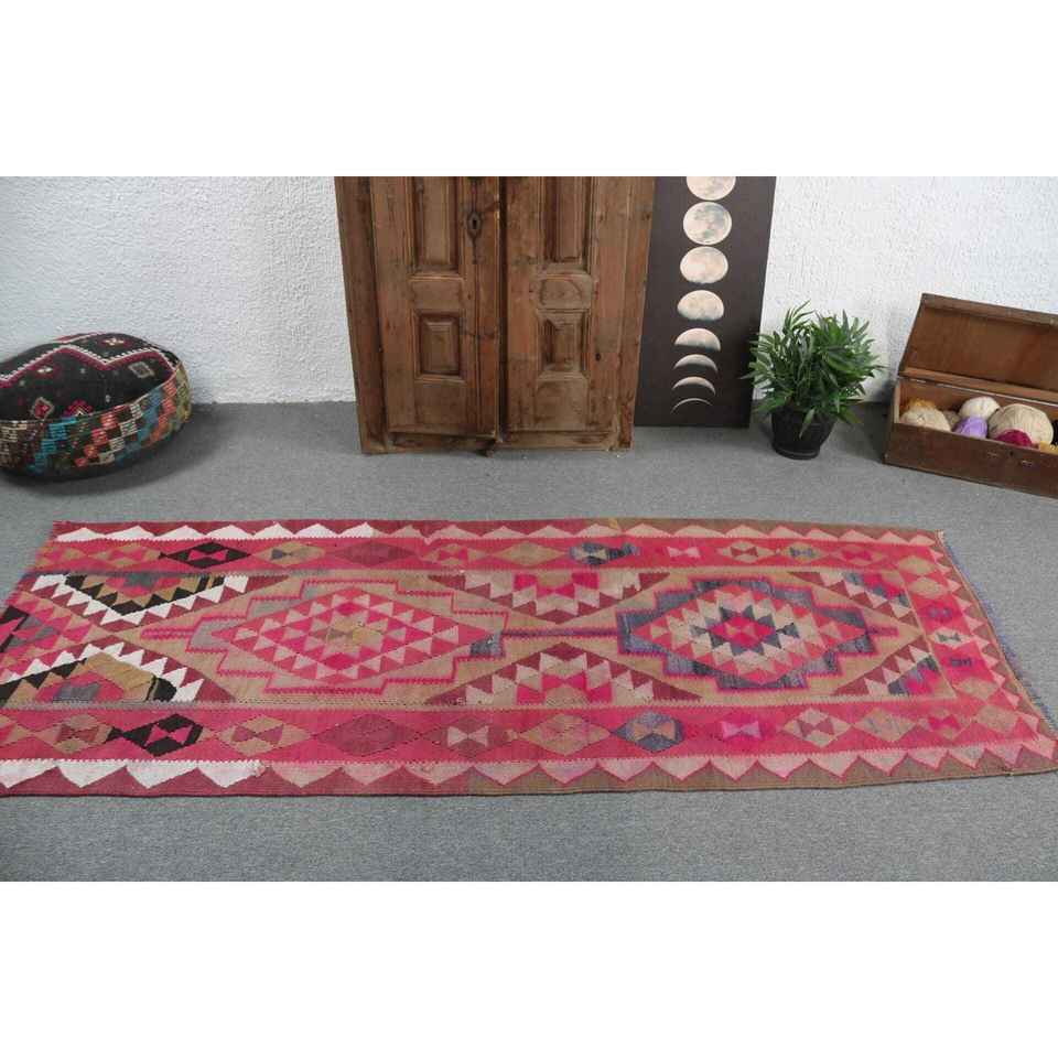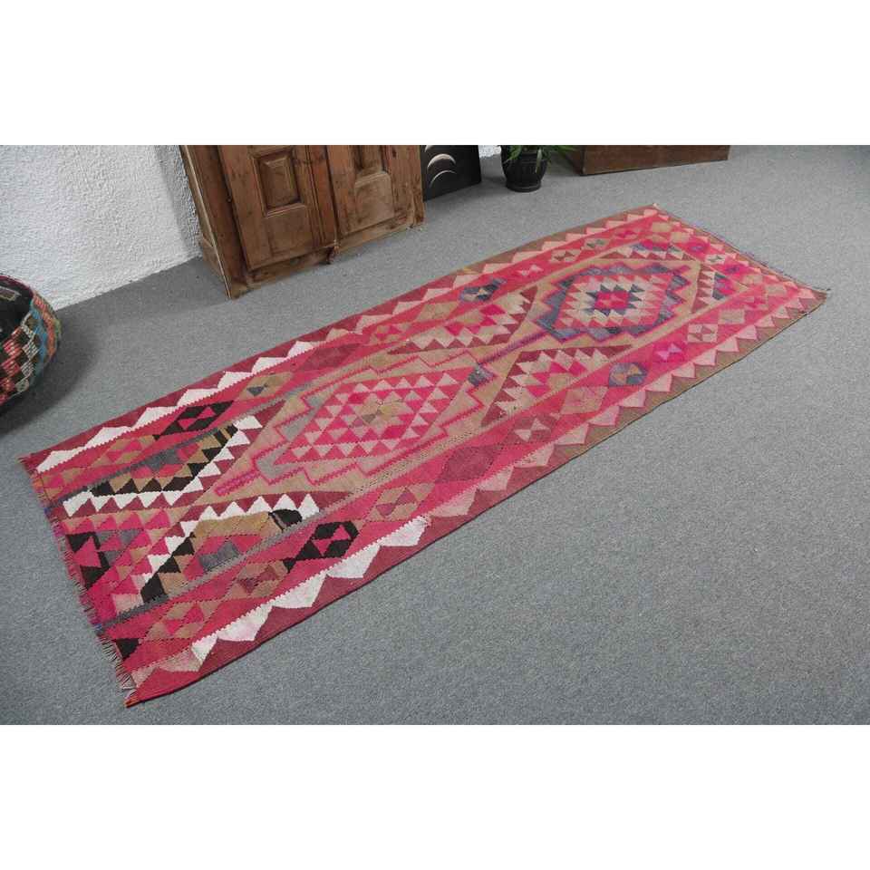 Alfombra Turca Vintage de 3x8.1 pies, Alfombra de Pasillo, Alfombra de Lana Roja Herki