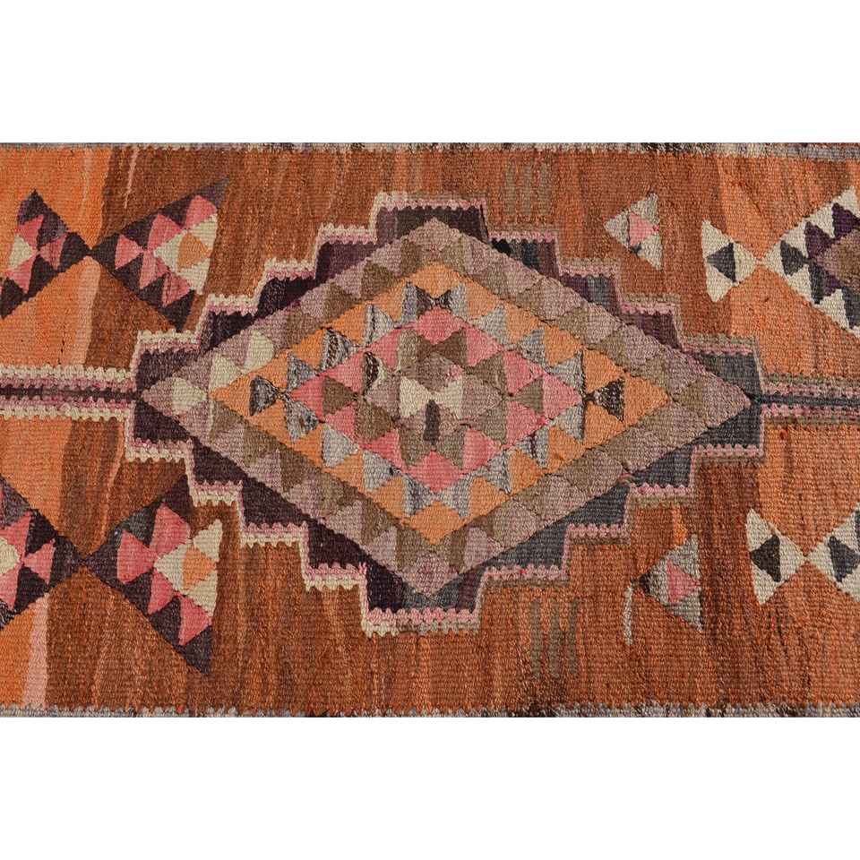 Alfombra Turca Vintage de 3x8.7 pies, Alfombra de Pasillo, Alfombra de Lana Naranja Kilim