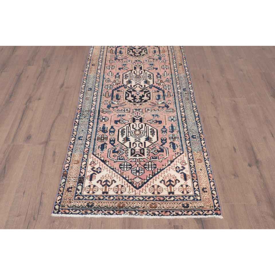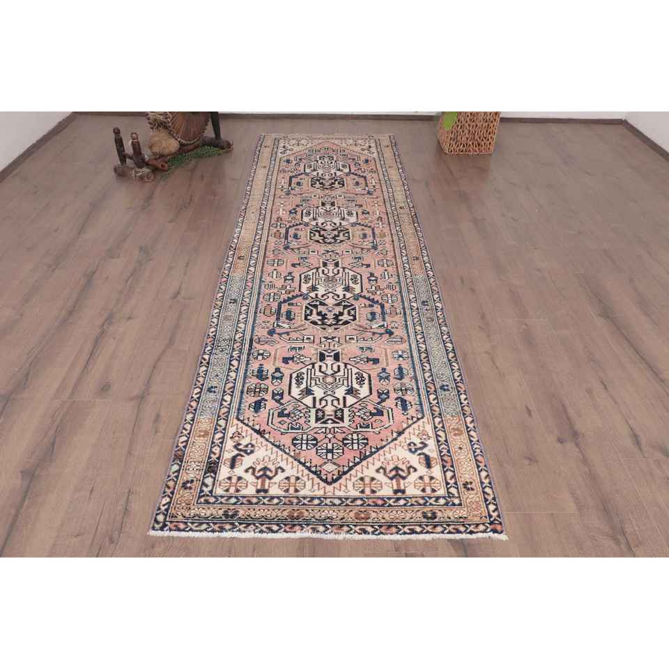 Alfombra de 3x9.5 pies, Alfombra Turca Vintage, Alfombra a Cuadros Azul y Rosa