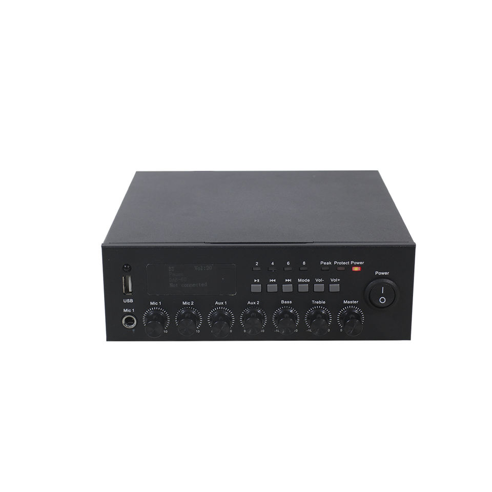 4-16 Ohm70V 60W Mini Mezclador Placa de amplificador de potencia PA Sistema de música con USB, sintonizador FM, Bluetooth y batería de respaldo de 12V CC